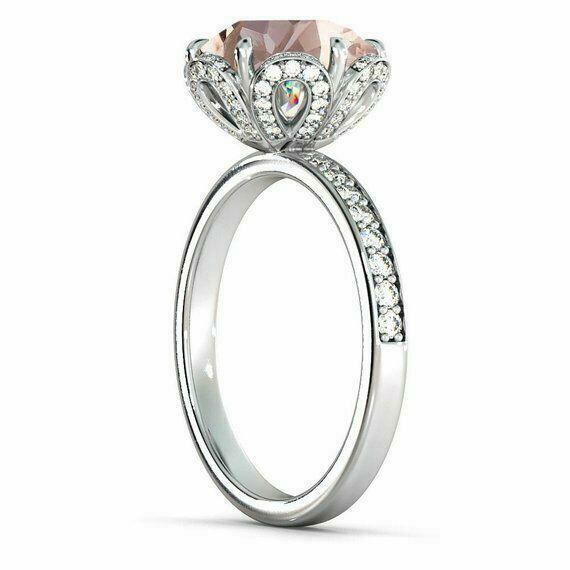 2ct Round Cut Peach Morganite Floral Women Engagement Ring 14k White Gold Over