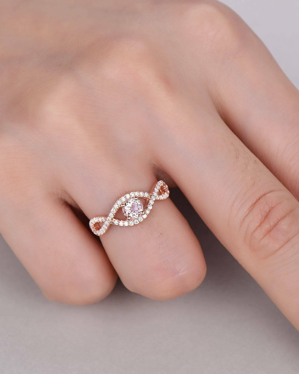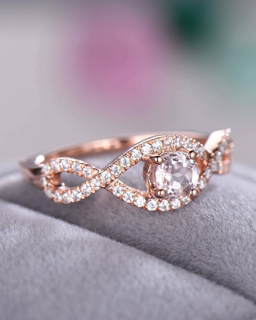 2Ct Round Cut Peach Morganite Infinity Swirl Engagement Ring 14K Rose Gold Over