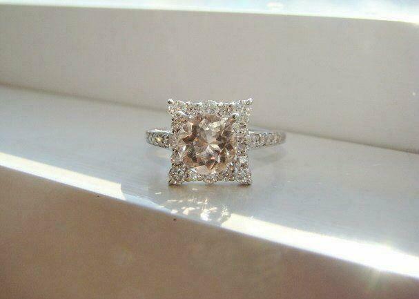 2ct Round Cut Peach Morganite Square Halo Engagement Ring 14K White Gold Over