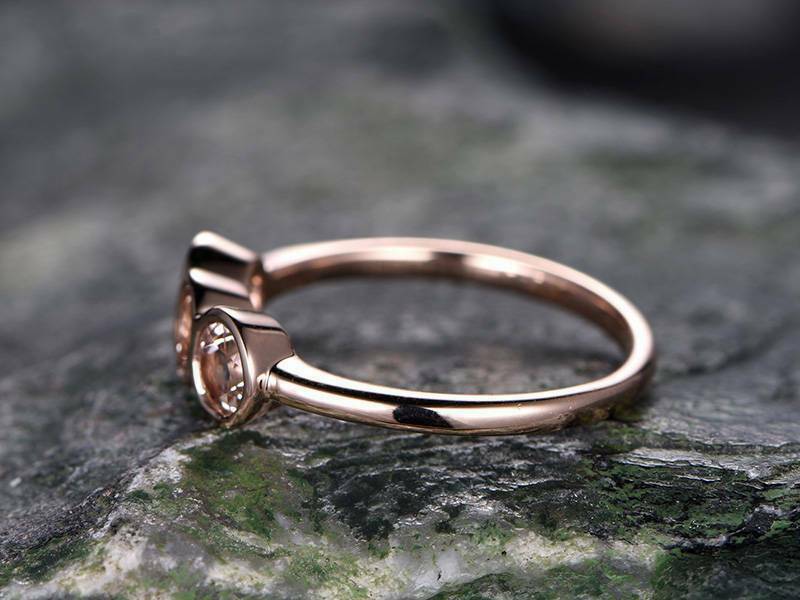 2ct Round Cut Peach Morganite Trilogy Engagement Ring 18K Rose Gold Finish New