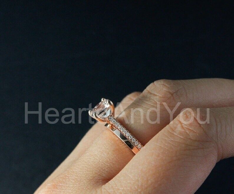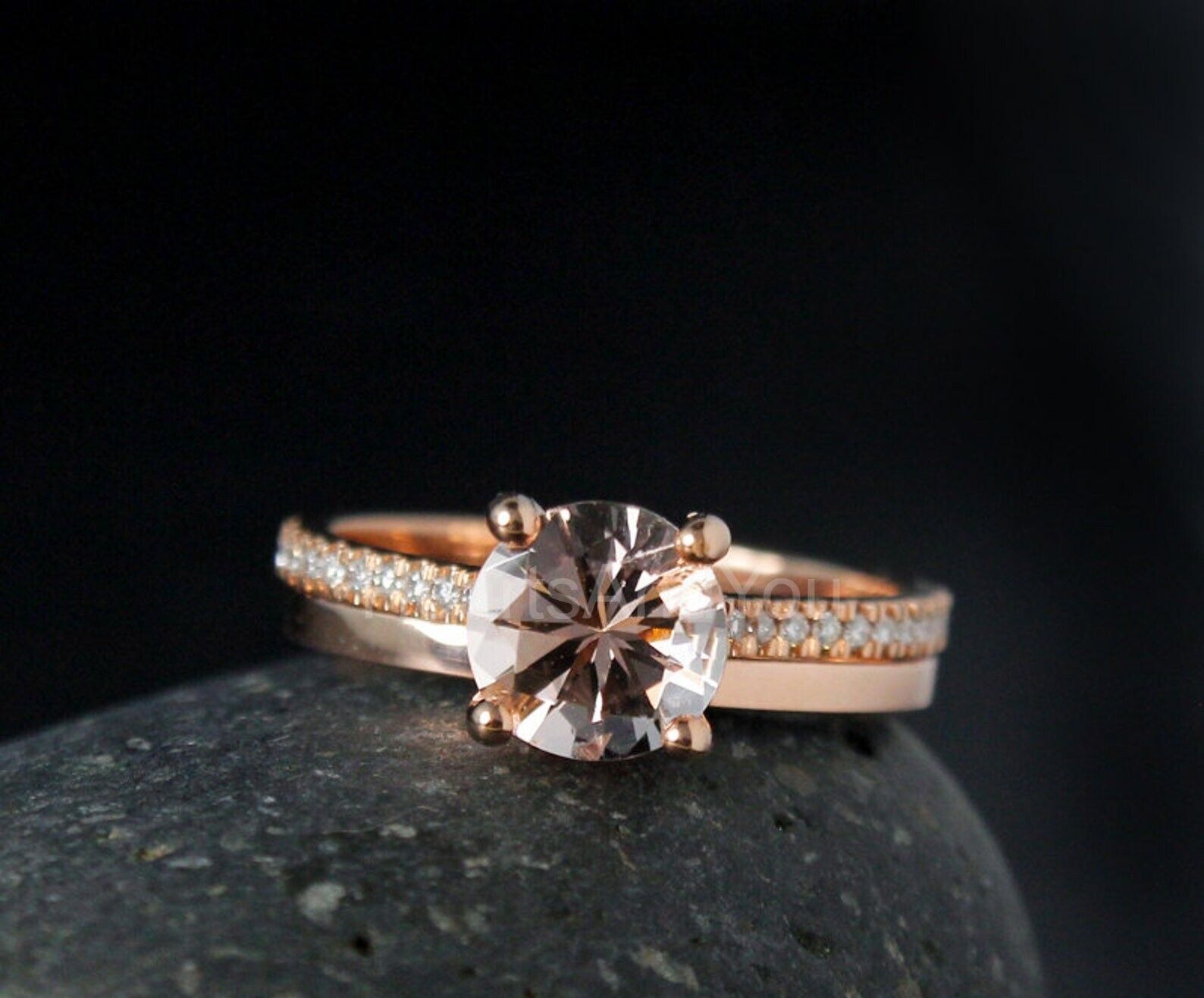 2ct Round Cut Simulated Morganite Solitaire Accents Ring Set 14k Rose Gold Plated