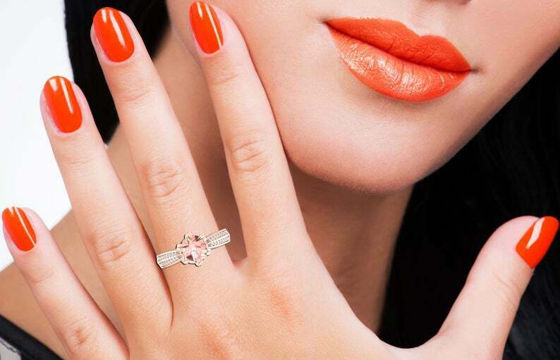 2ct Round Cut Peach Morganite Solitaire 2 Row Band Engagement Ring 14k Rose Gold Over