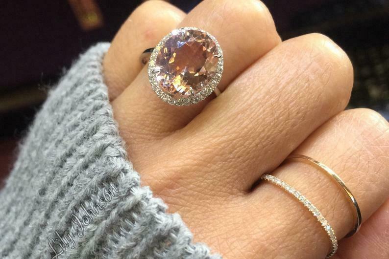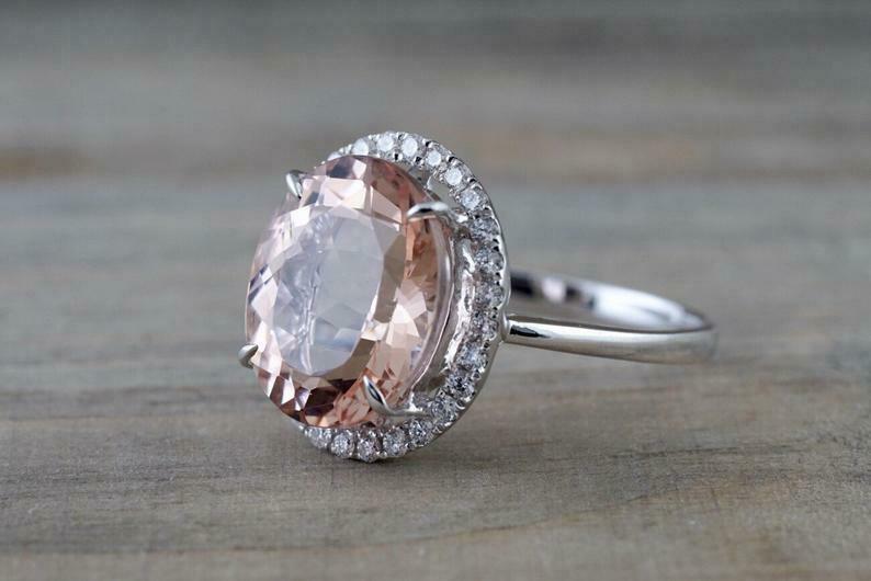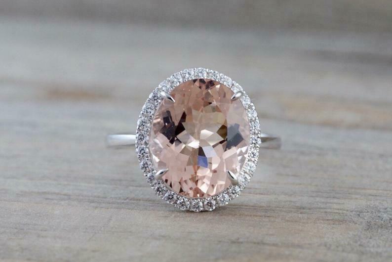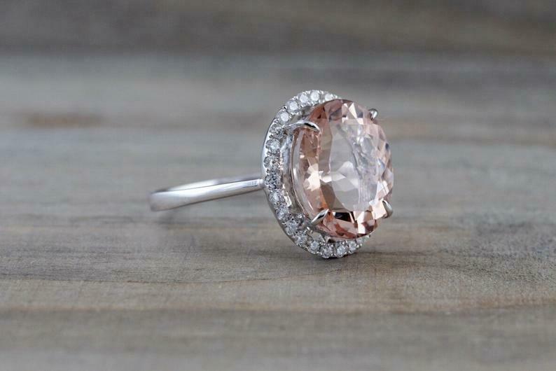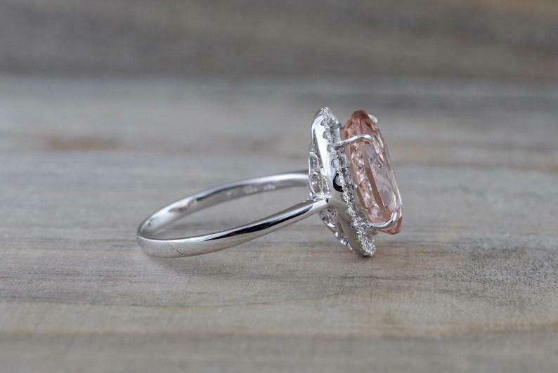 3.5ct Oval Cut Peach Morganite Engagement Ring 14k White Gold Finish Diamond Halo