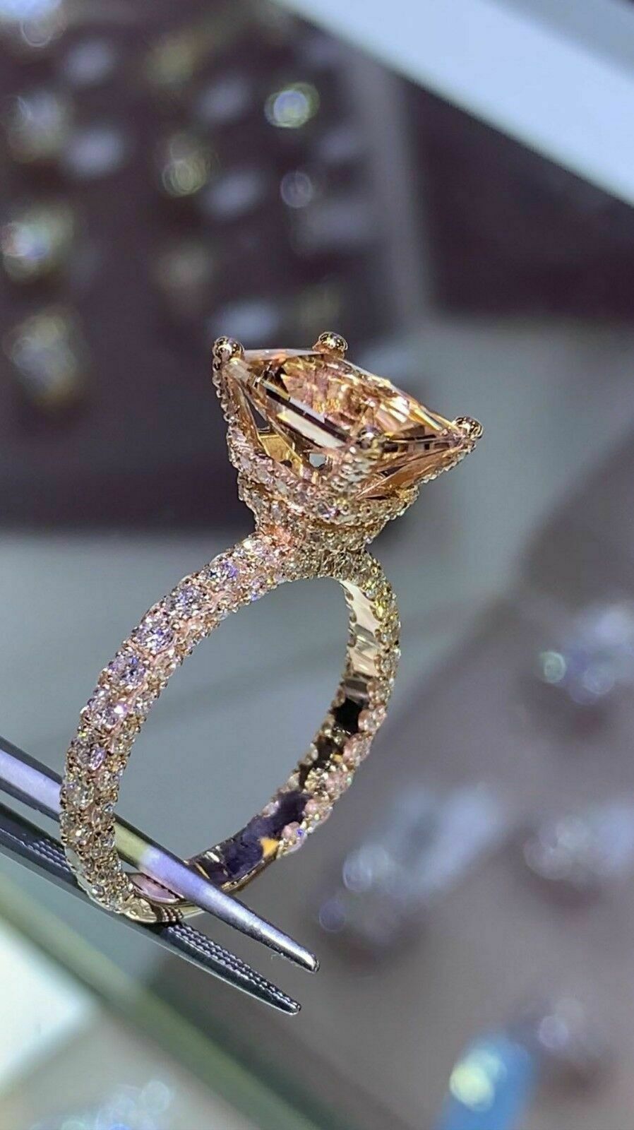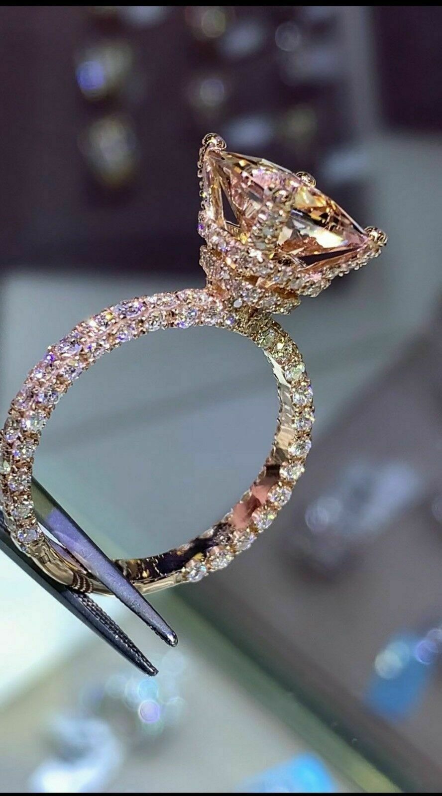 3.5ct Radiant Cut Peach Morganite Gatsby Rich Engagement Ring 14k Rose Gold Over