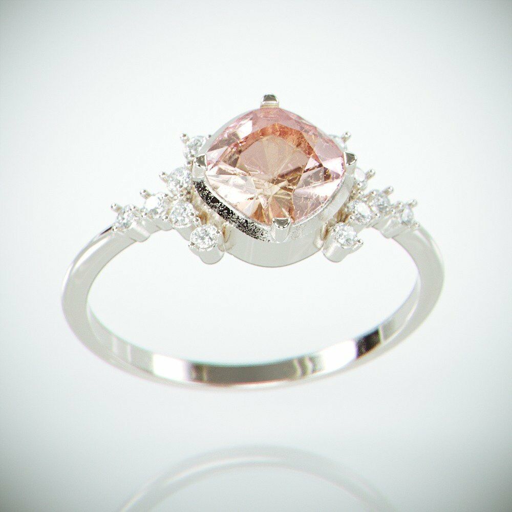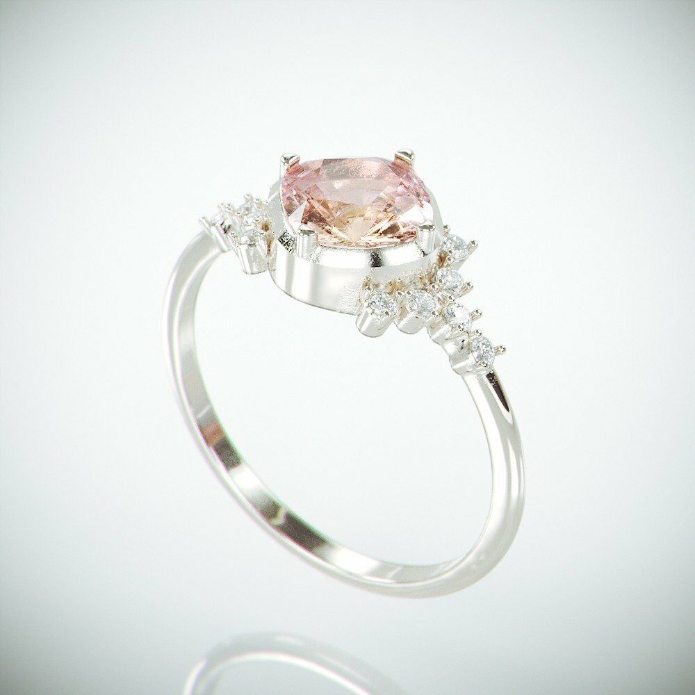 3Ct Cushion Cut Morganite Engagement Ring 14K White Gold Finish Diamond Accents