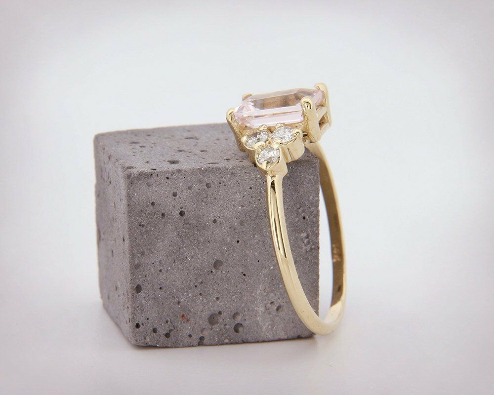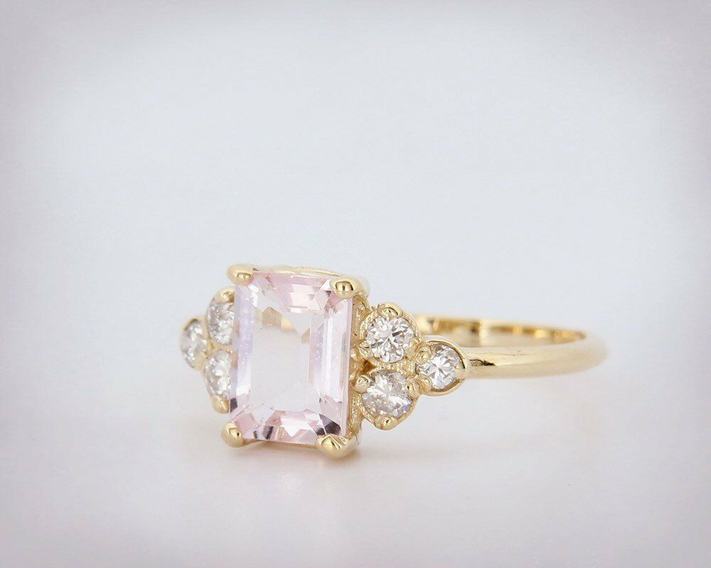 3Ct Emerald Cut Morganite Engagement Ring 14K Yellow Gold Finish Diamond Accents
