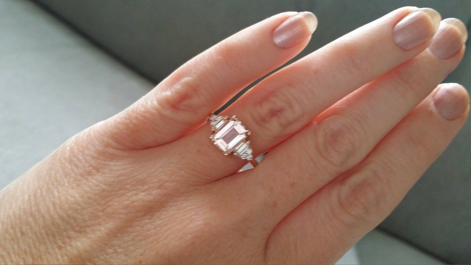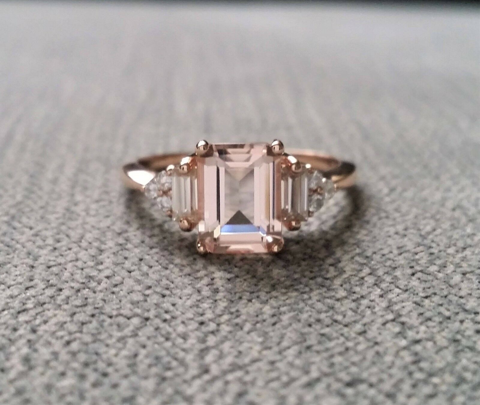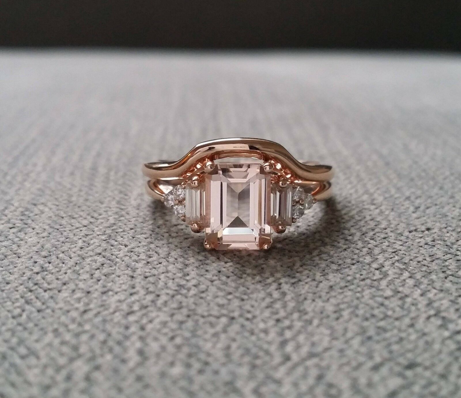 3Ct Emerald Cut Peach Morganite Bridal Set Engagement Ring 18K Rose Gold Finish