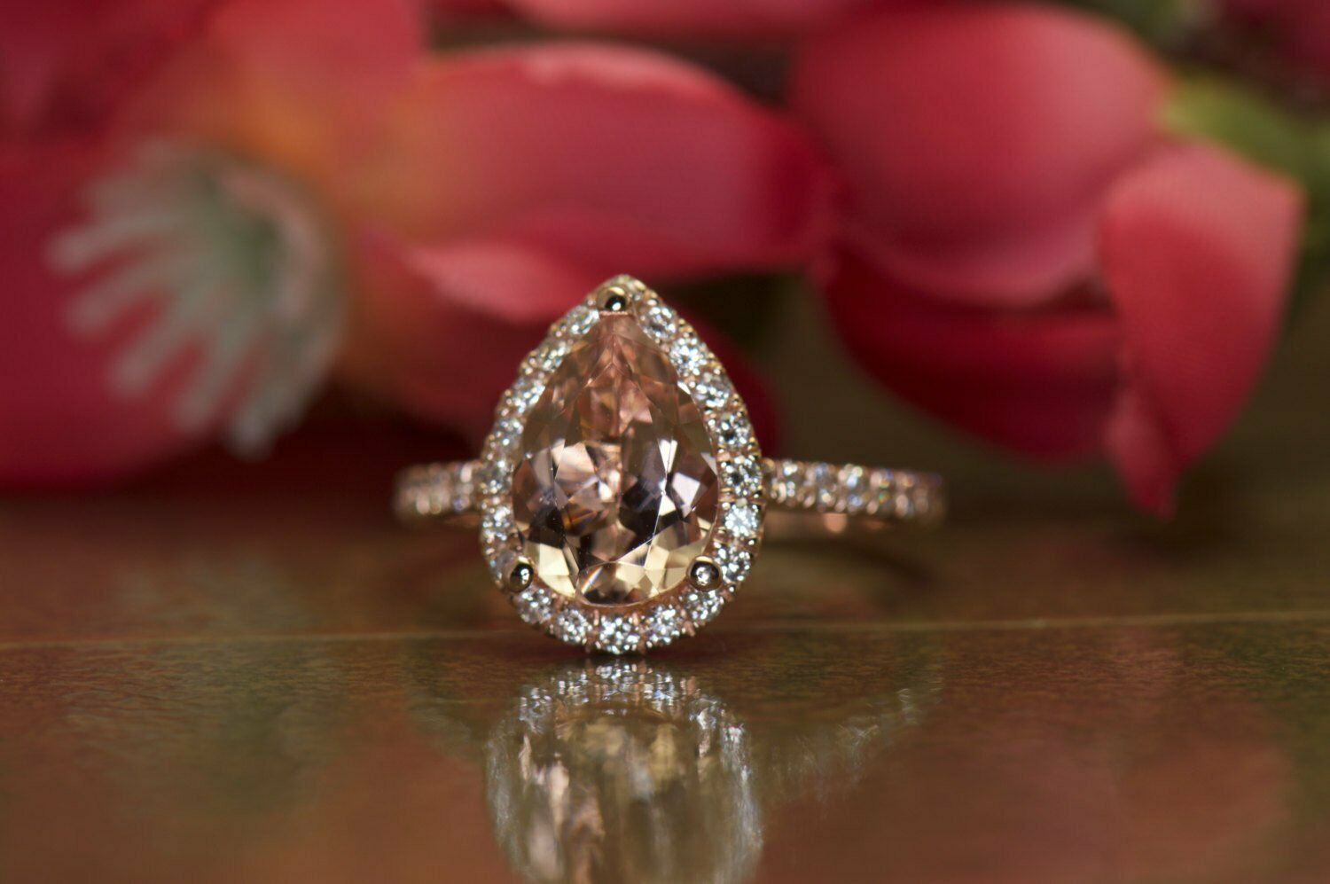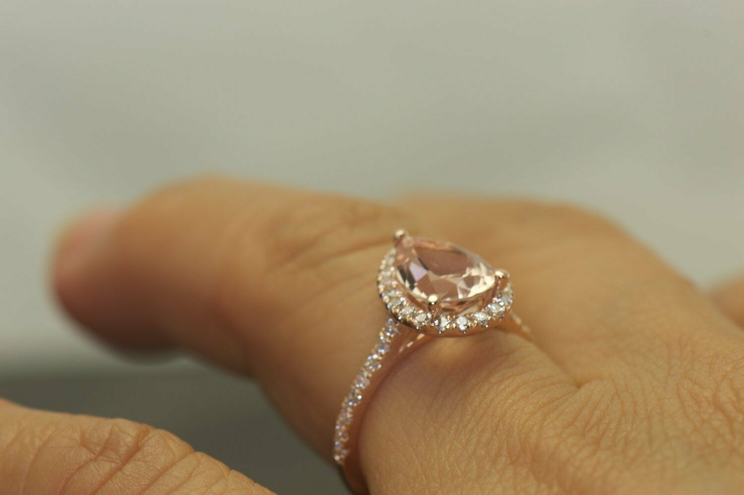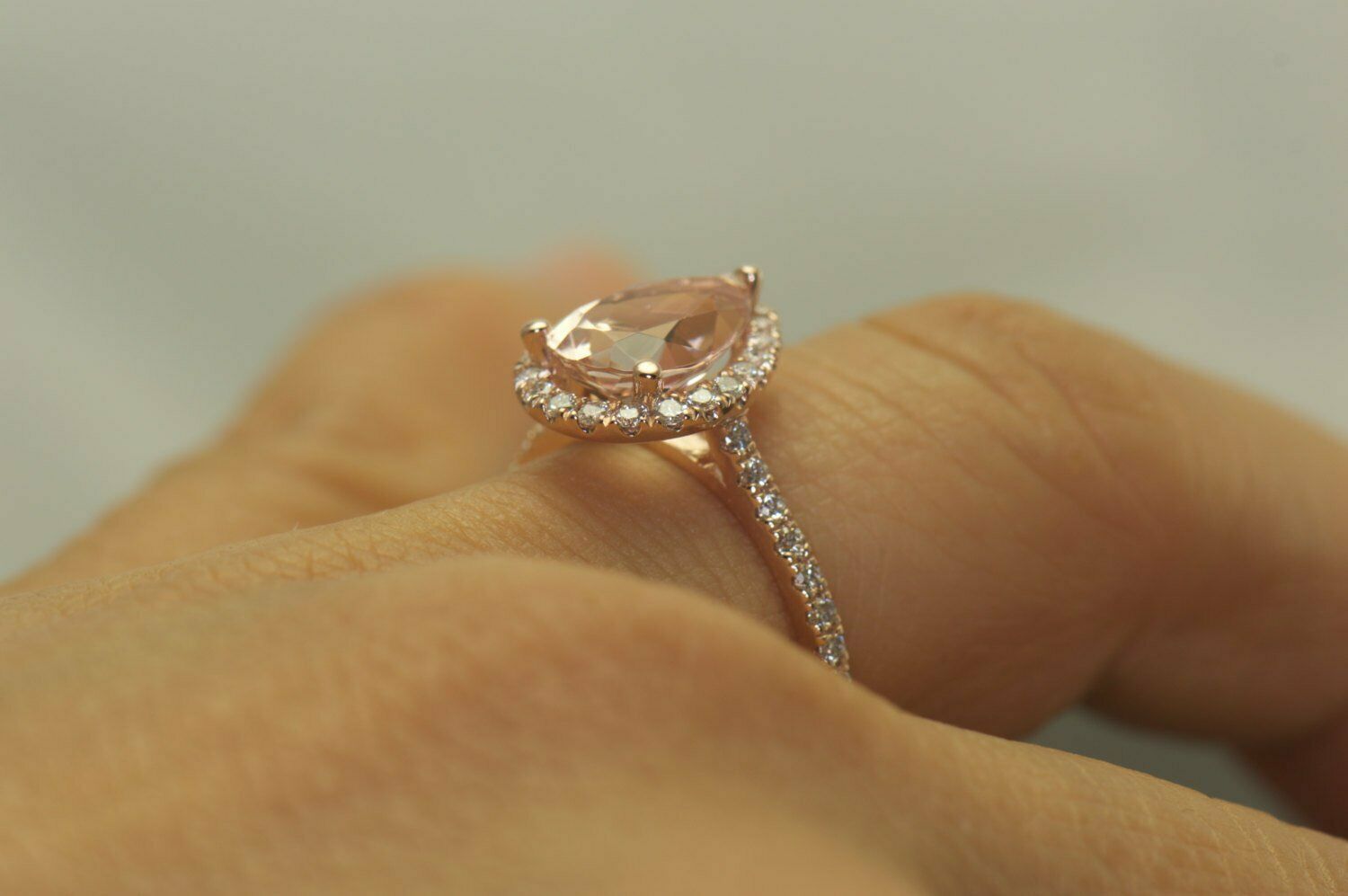 3Ct Pear Cut Peach Morganite Engagement Ring 14K Rose Gold Finish Diamond Halo
