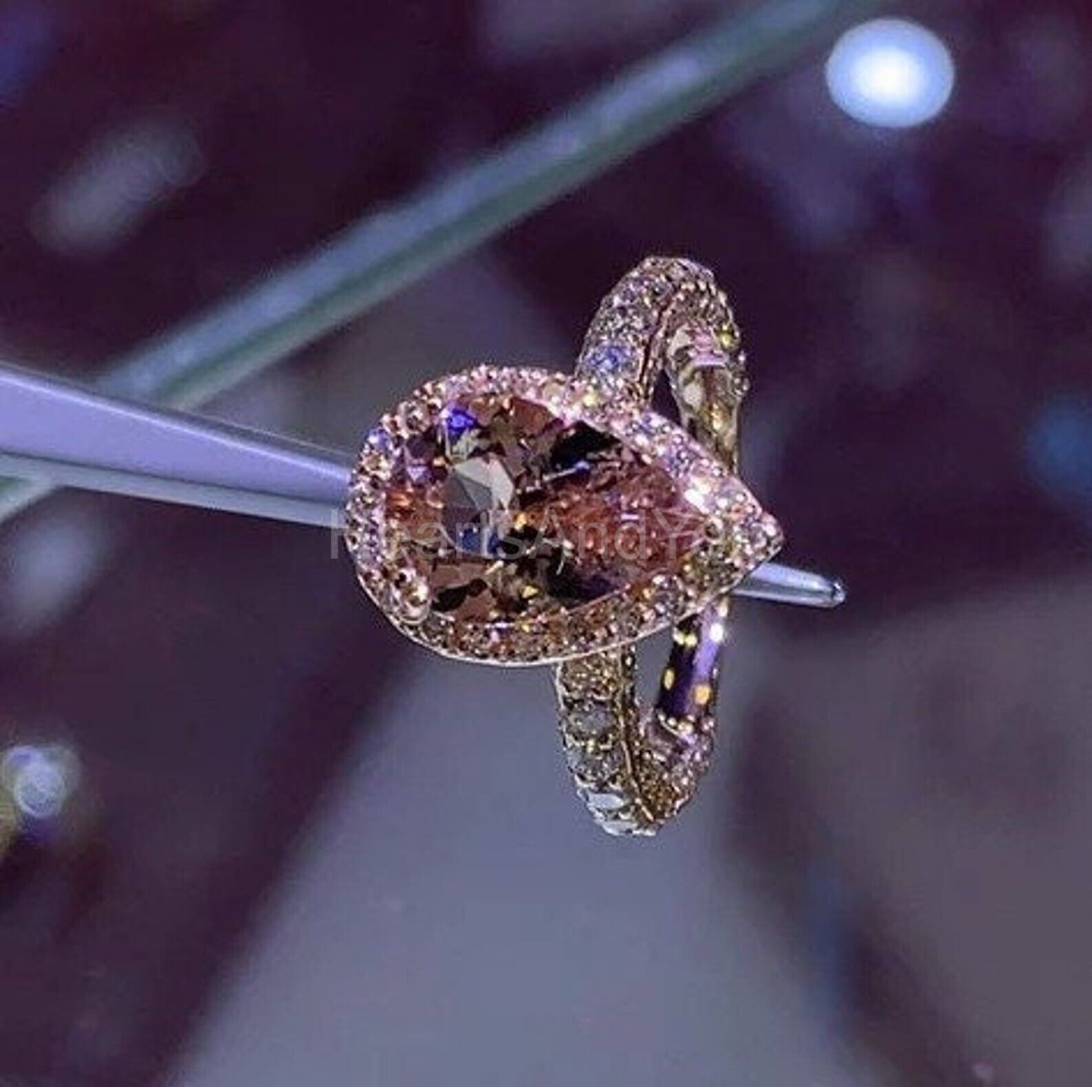 3ct Pear Cut Simulated Peach Morganite Halo Engagement Ring 14k Rose Gold Plated