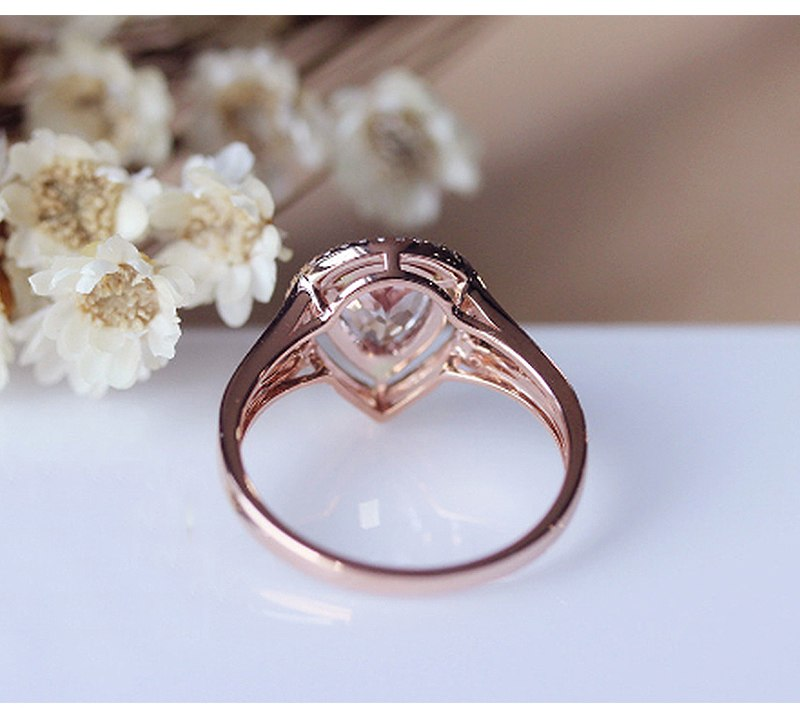 3ct Pear Peach Morganite Engagement Ring 14k Rose Gold Finish Double Halo Shank