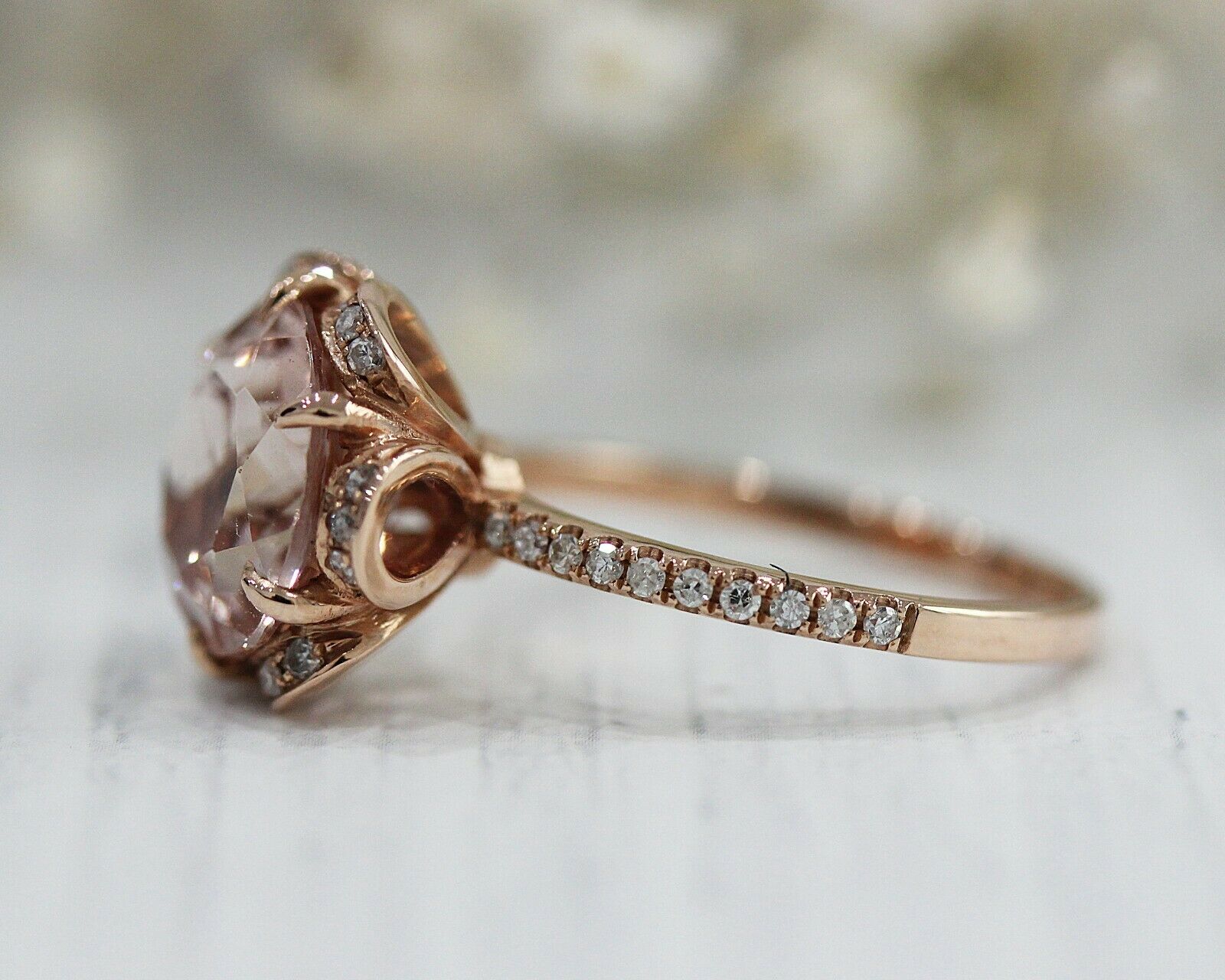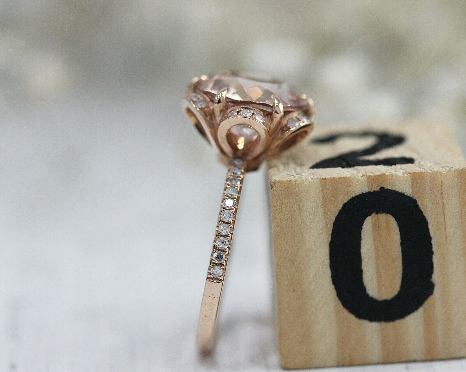 3Ct Round Cut Peach Morganite Diamond Floral Engagement Ring 14K Rose Gold Over