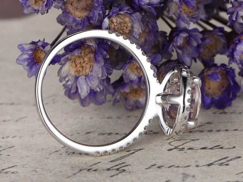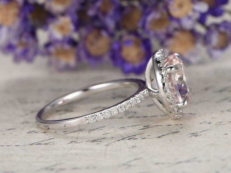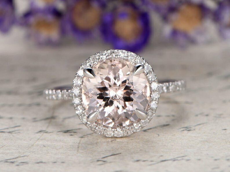 3ct Round Cut Peach Morganite Engagement Ring Diamond Halo 14k White Gold Finish
