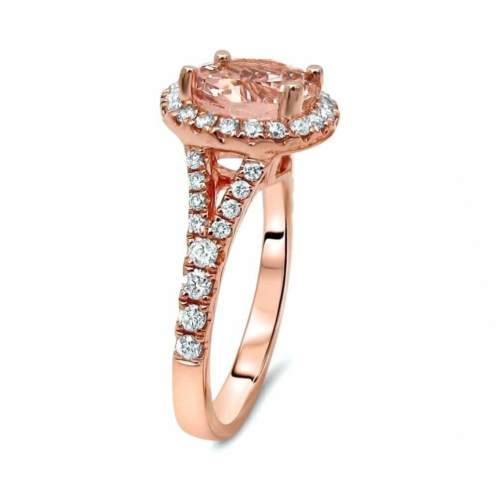 3Ct Round Cut Peach Morganite Split Band Halo Engagement Ring 14K Rose Gold Over