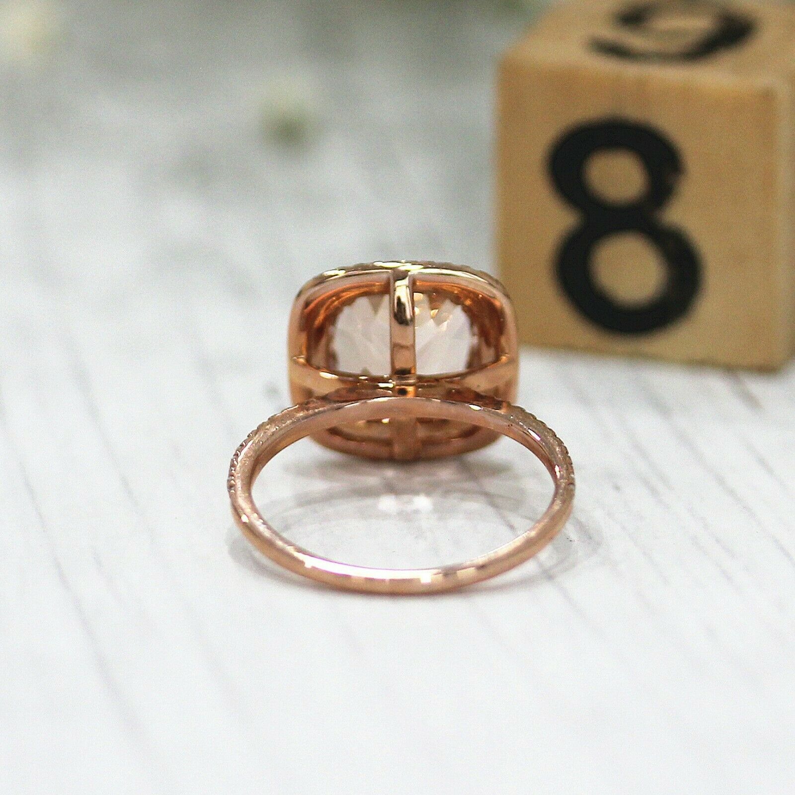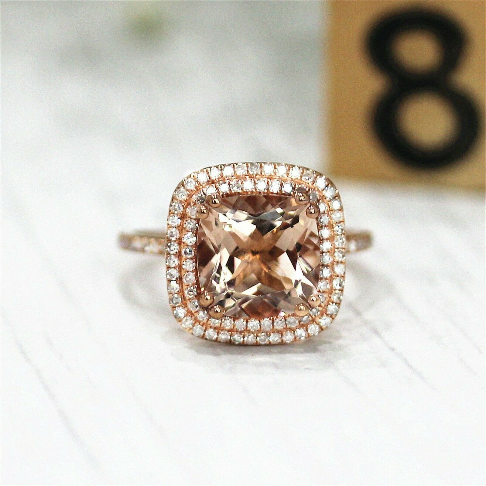 4Ct Cushion Cut Morganite Diamond Dual Halo Engagement Ring 14K Rose Gold Finish