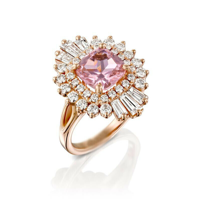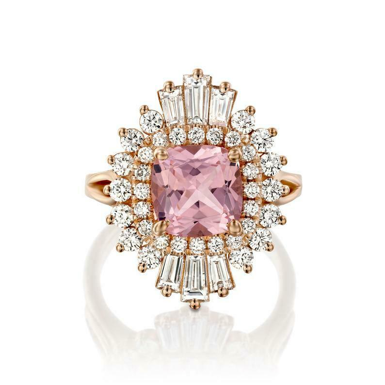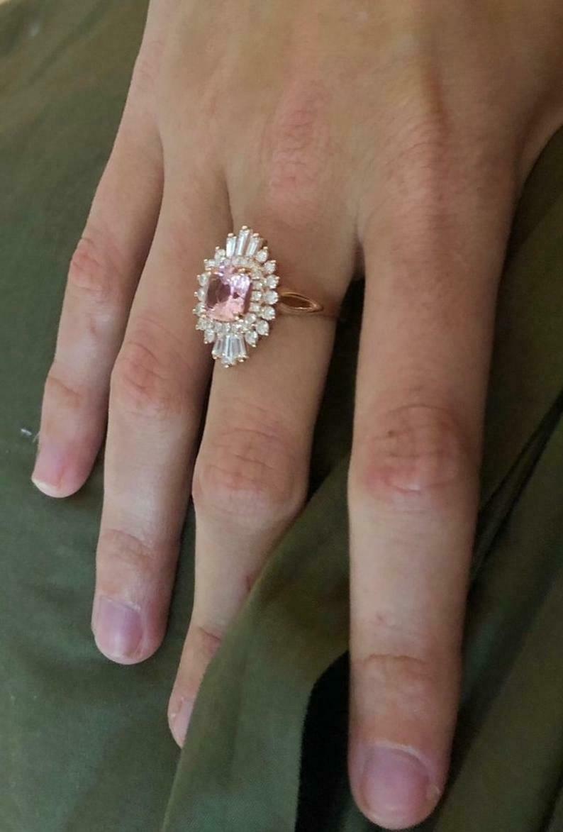 4ct Cushion Cut Peach Morganite Engagement Ring Ballerina Halo 14k RoseGold Over