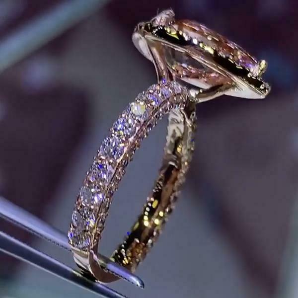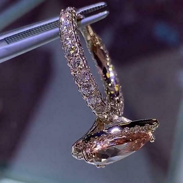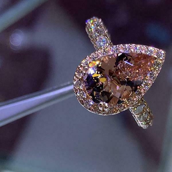 4Ct Pear Cut Peach Morganite Diamond Accent Engagement Ring 14K Rose Gold Finish