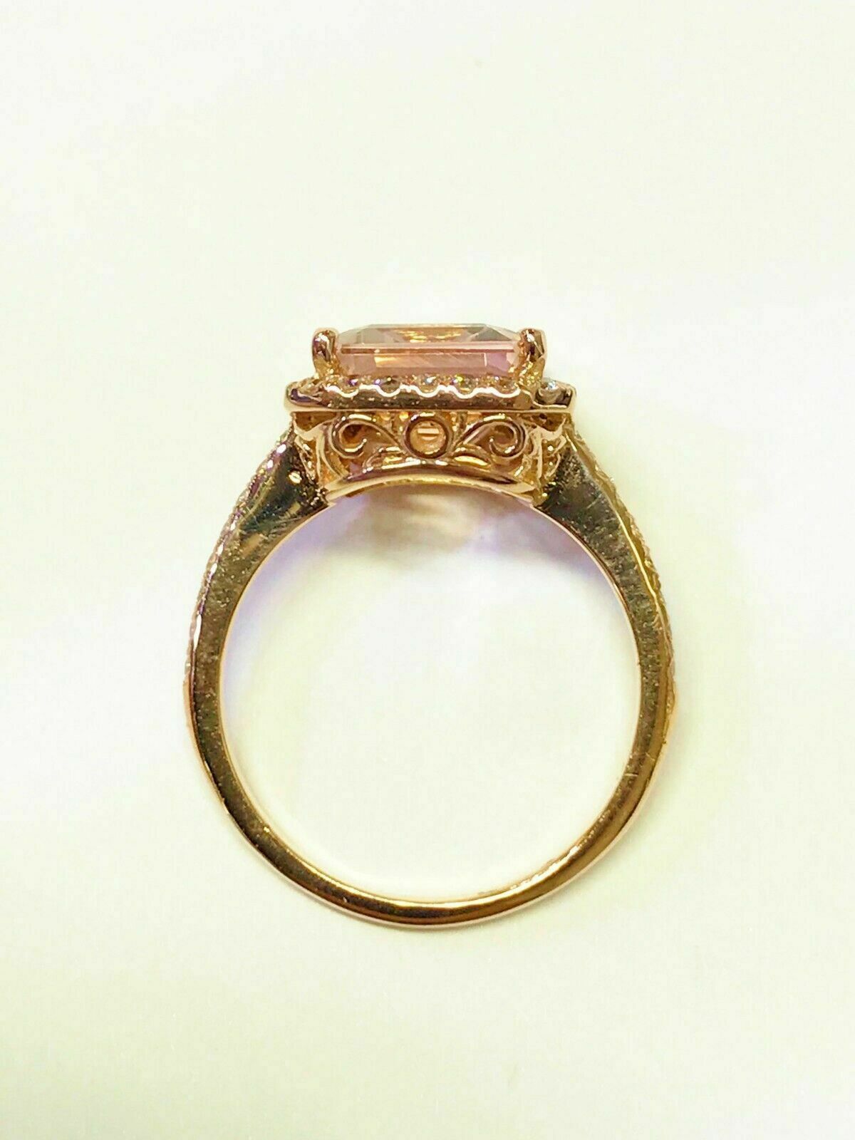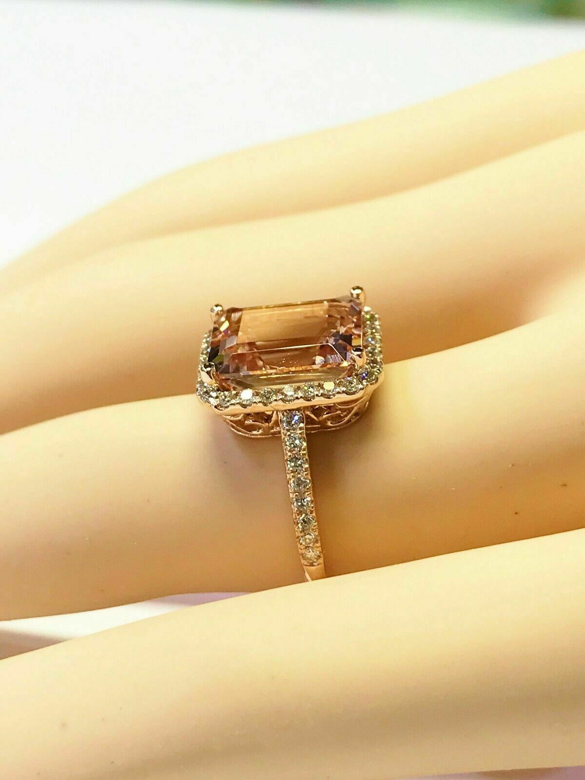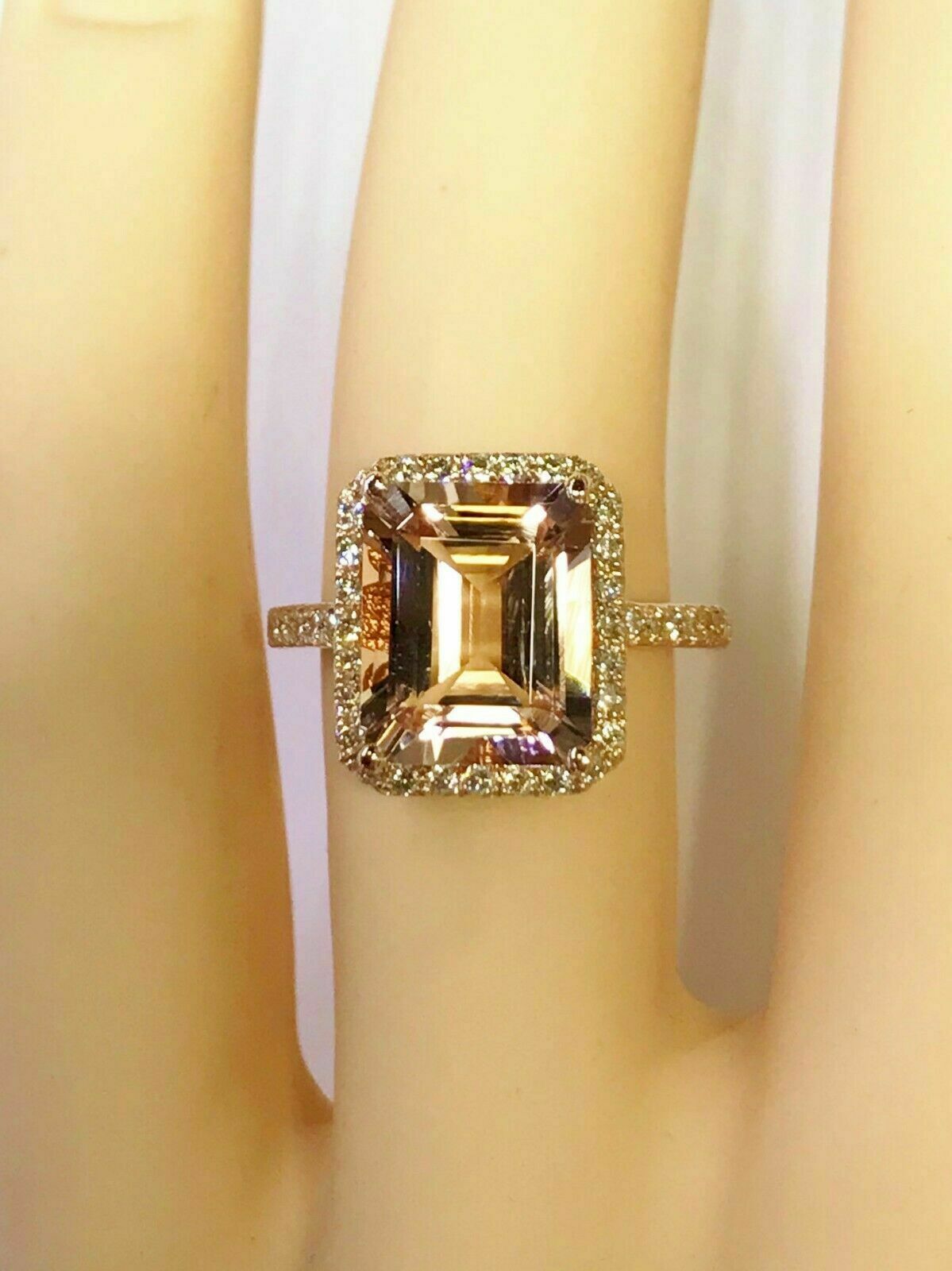 5.5ct Emerald Cut Morganite Exquisite Halo Engagement Ring 14K Rose Gold Finish