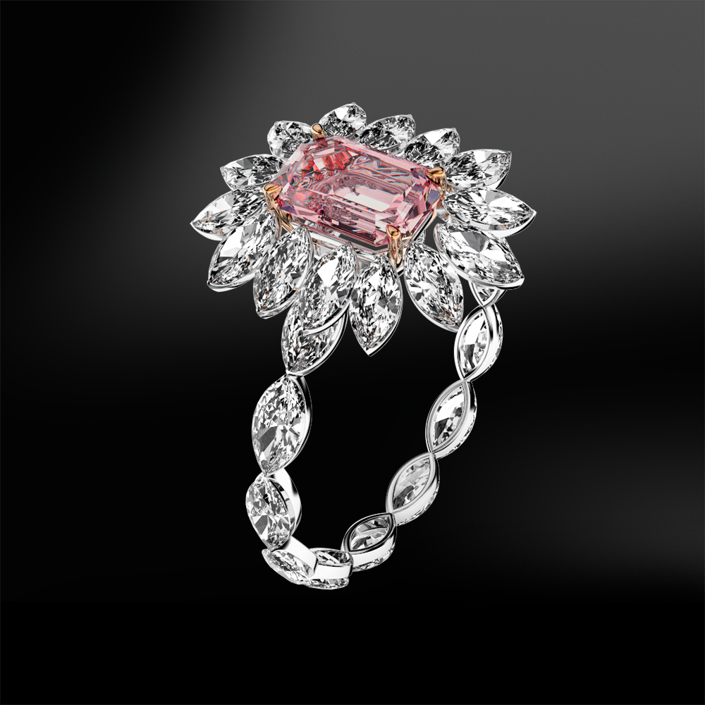 5Ct Emerald Cut Peach Morganite Floral Halo Cocktail Ring 14K White Gold Finish