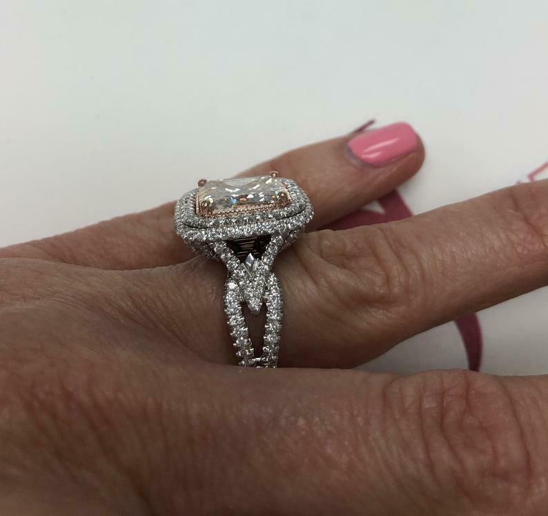 5ct Princess Cut Morganite Dual Halo Split Band Cocktail Ring 14k WhiteGold Over