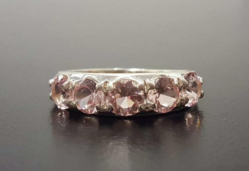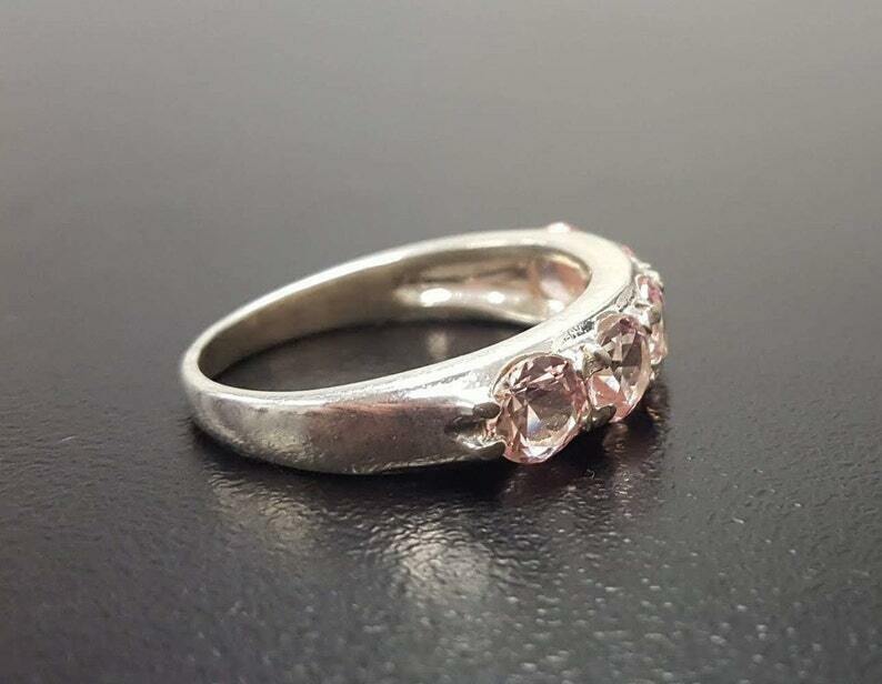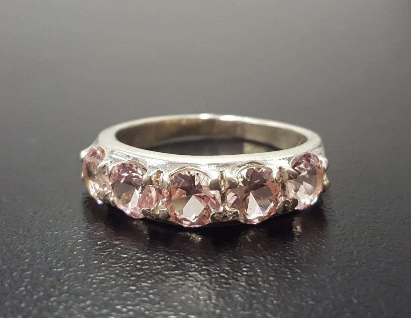 5ct Wedding Band Round Cut Peach Morganite Half Eternity 14k White Gold Finish