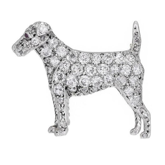 3.5ct Round Cut VVS1D Diamond Pointer Dog Pin Brooch 14K White Gold Finish