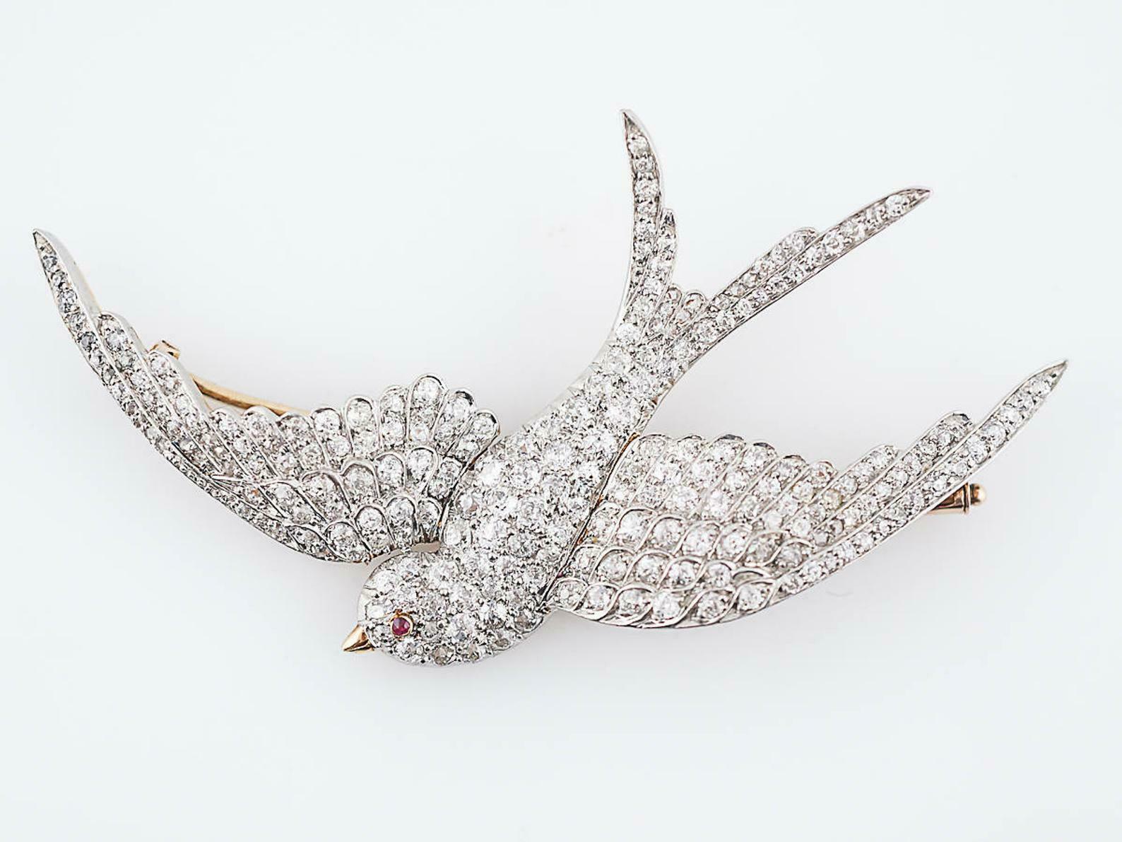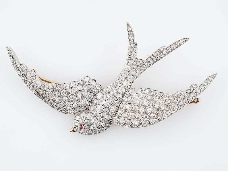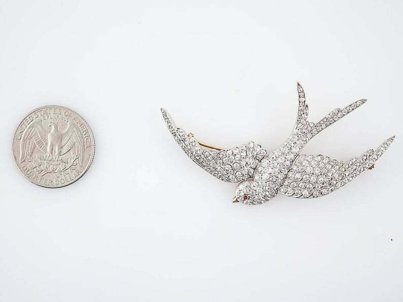 3.07ct Round Cut VVS1D Diamond Flying Bird Pin Brooch 14k Dual Gold Finish