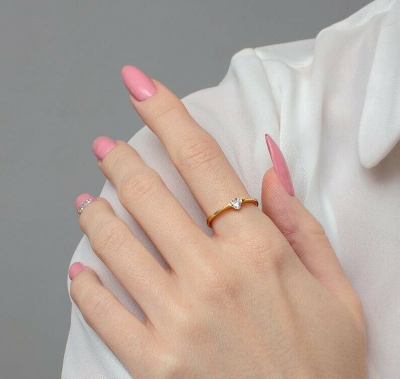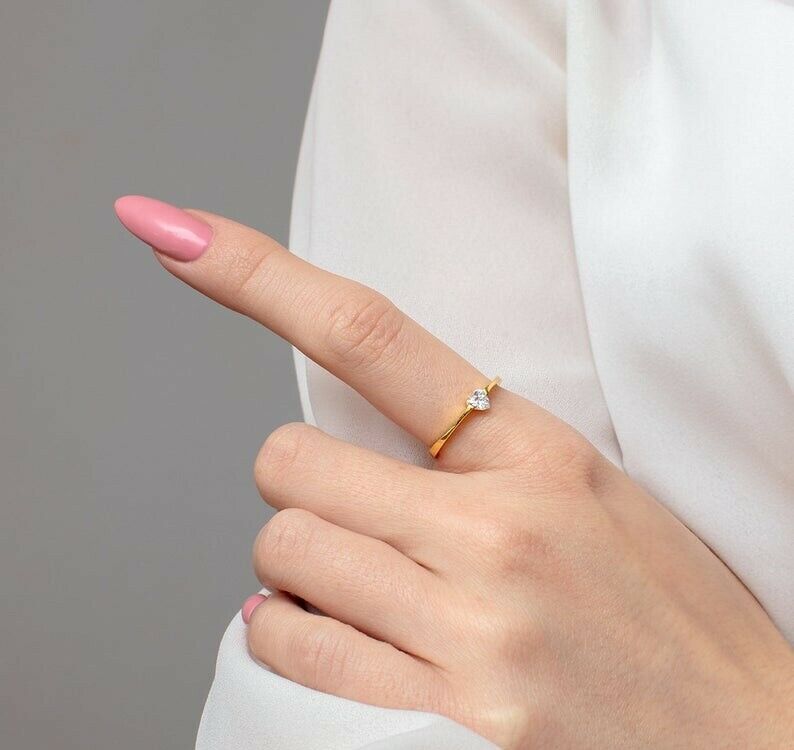 0.1ct Engagement Ring Heart Cut Diamond Solitaire 14k Yellow Gold Finish