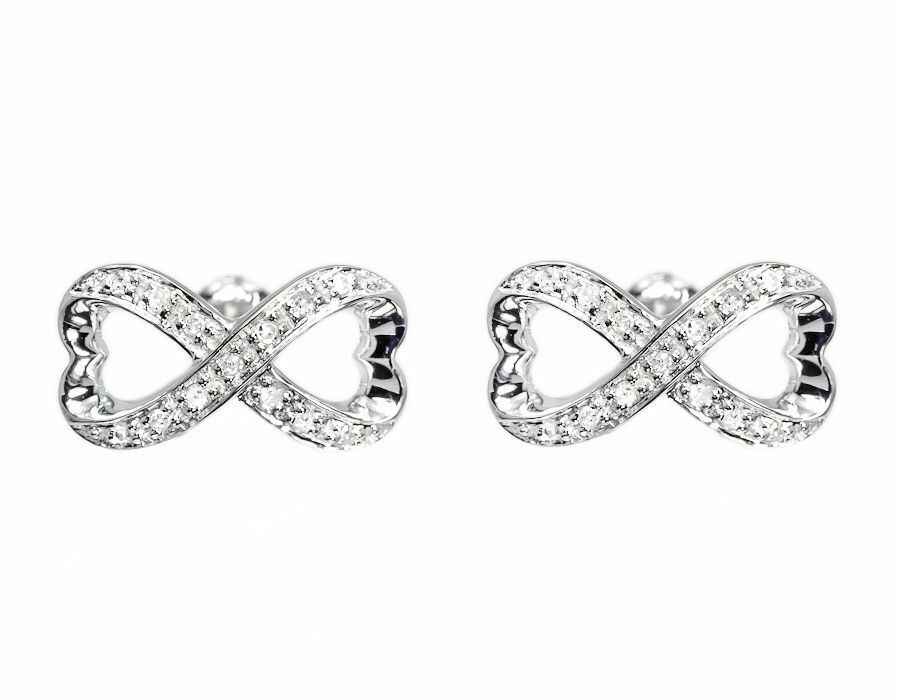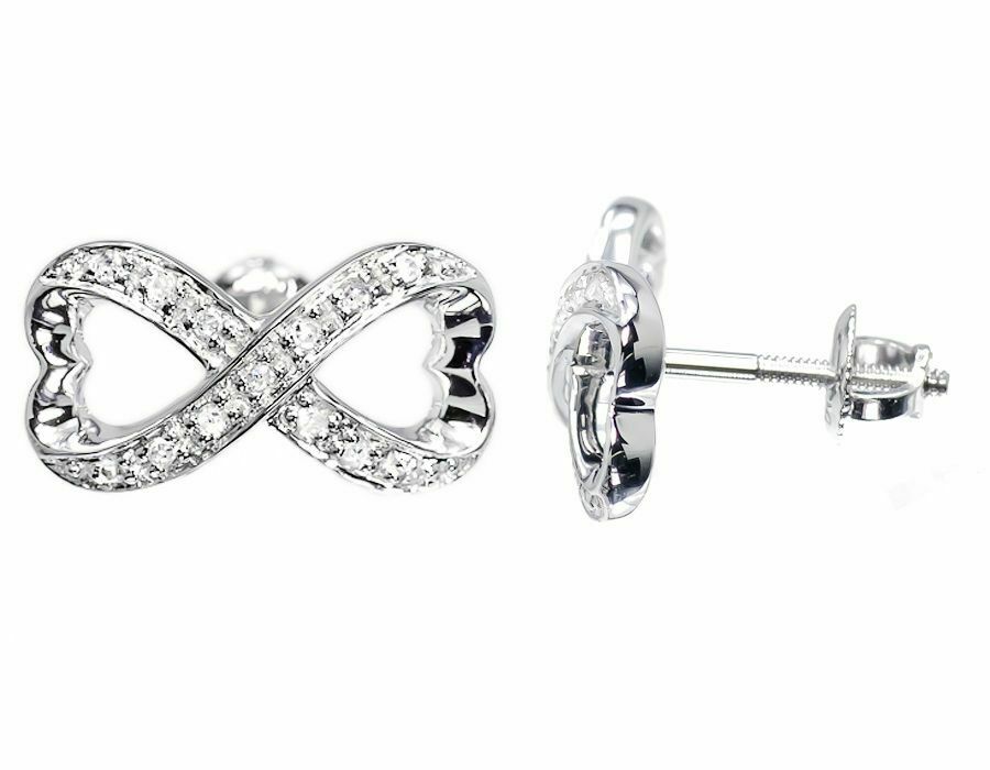 0.25ct Round Cut VVS1 Diamond Infinity Heart Stud Earrings 14k White Gold Finish