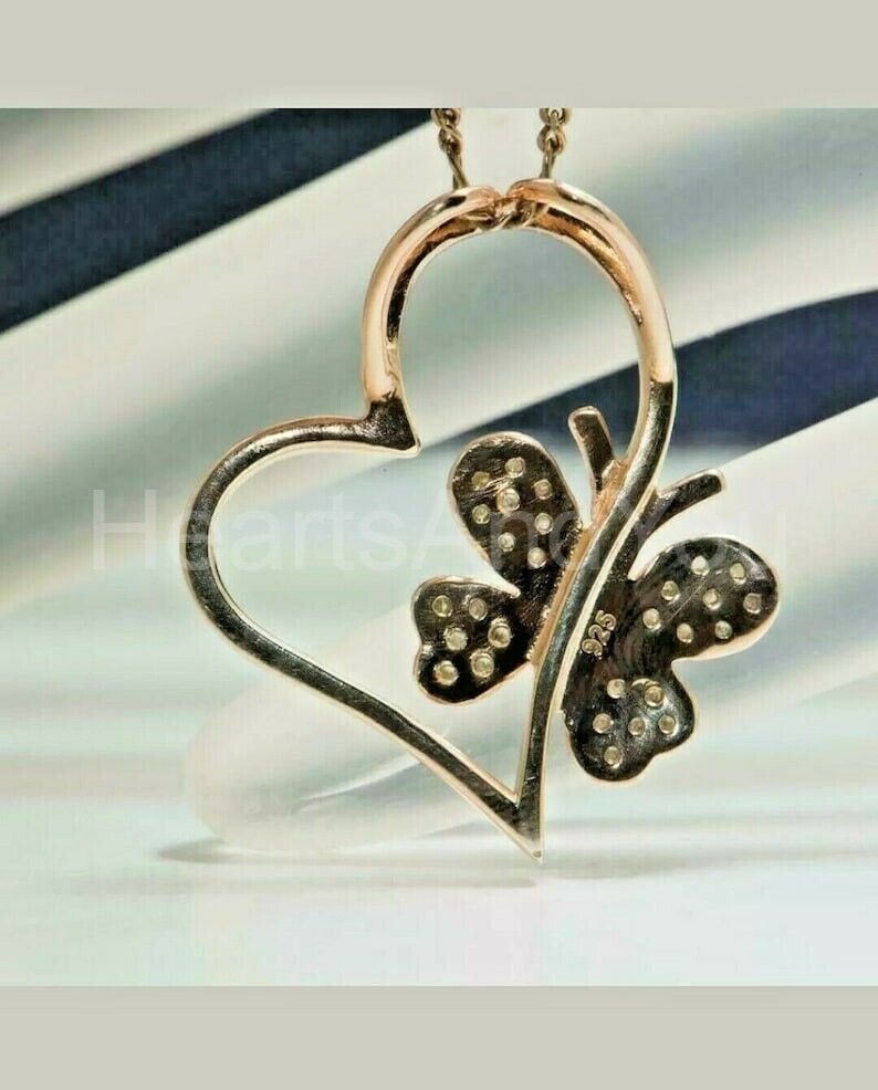 0.25ct Round Moissanite Heart Shape Butterfly Pendant 14k Gold Plated NO CHAIN