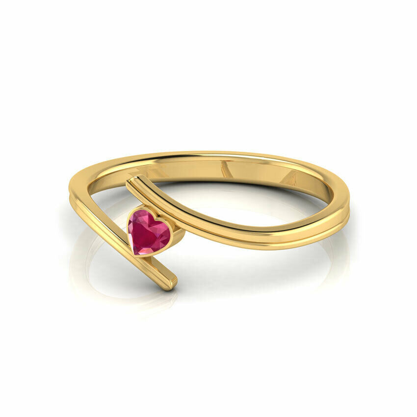 0.2Ct Heart Cut Pink Ruby Bypass Solitaire Engagement Ring 14K Yellow Gold Over