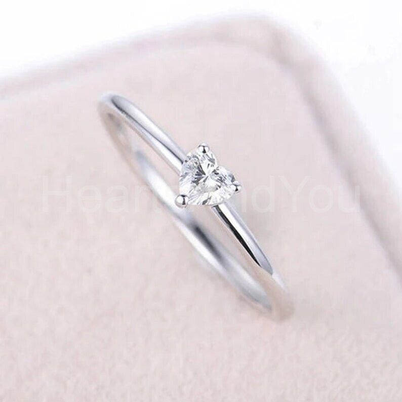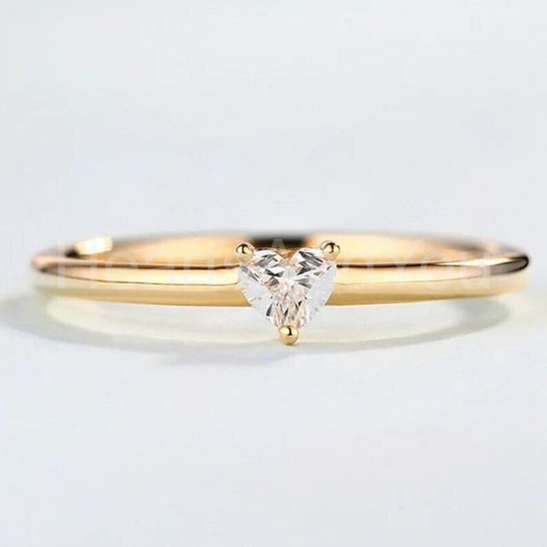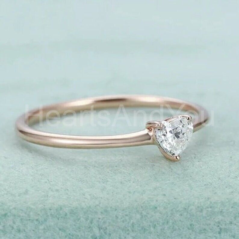 0.2ct Heart Cut Simulated Diamond Minimalist Solitaire Ring 14k Rose Gold Plated
