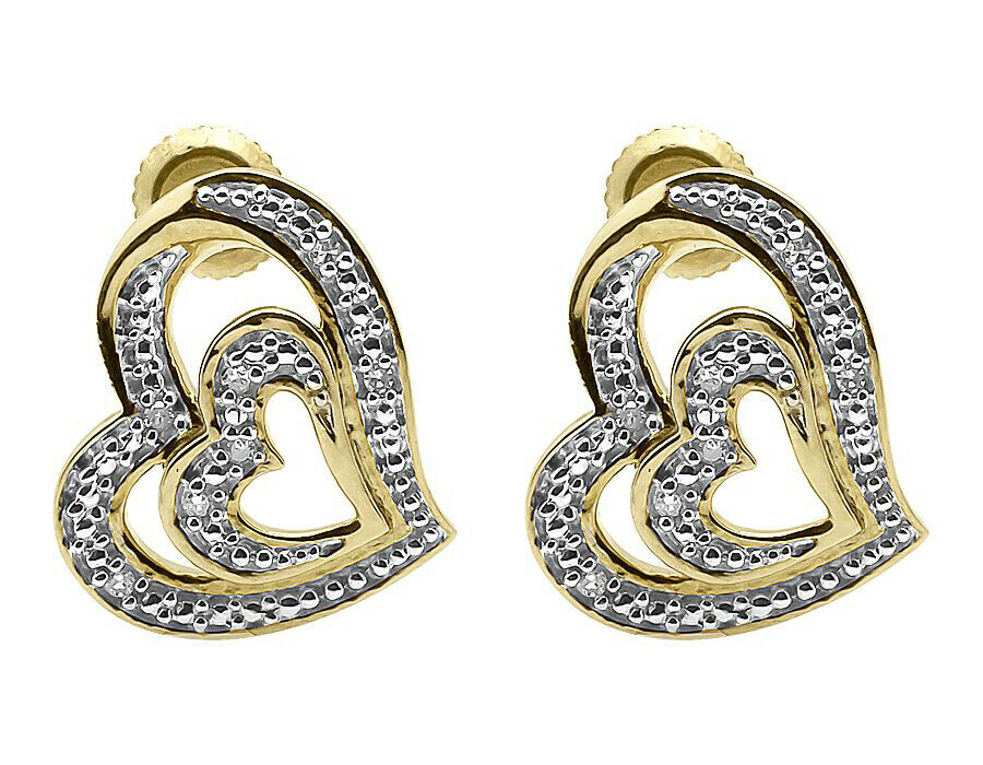 0.2ct Round Cut Diamond Dual Heart Design Stud Earrings 14k Yellow Gold Finish