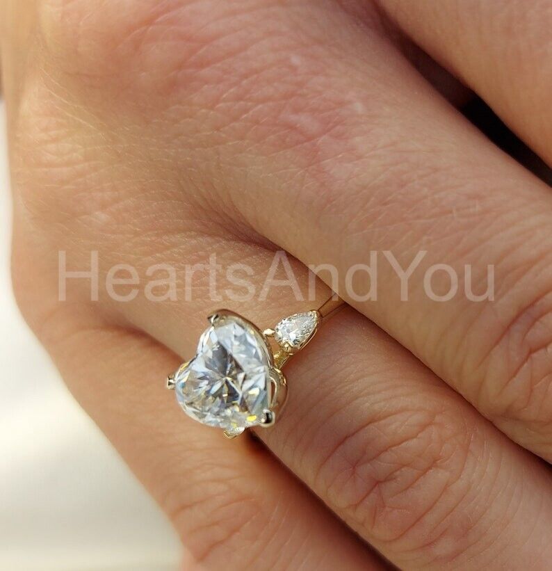 0.3ct Heart Simulated Diamond Three Stone Engagement Ring 14k Yellow Gold Plated