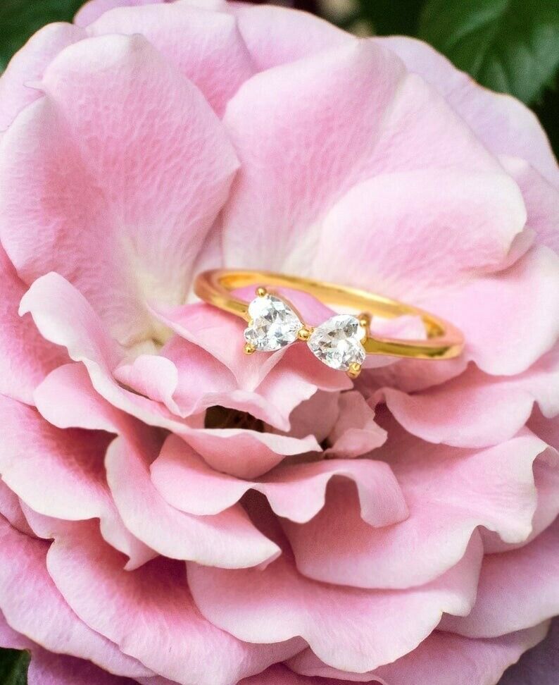 0.5ct Engagement Ring Heart Cut Diamond Bow Tie Design 14k Yellow Gold Finish