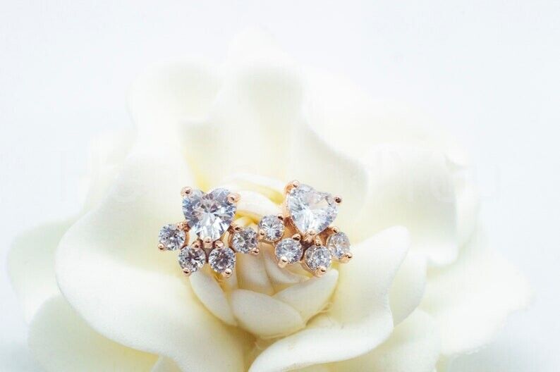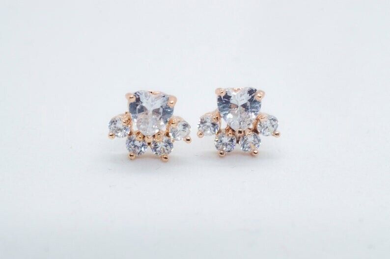 0.5ct Heart Cut Simulated Diamond Paw Stud Earrings 14k Rose Gold Plated