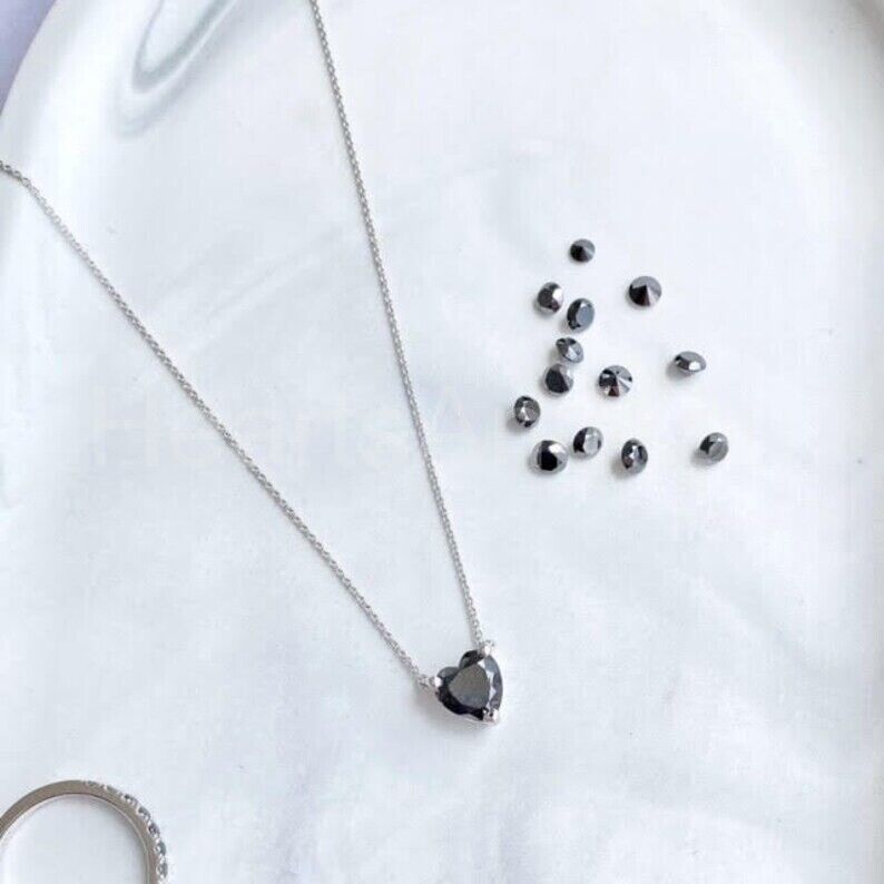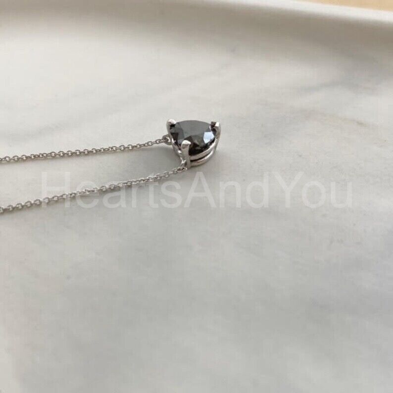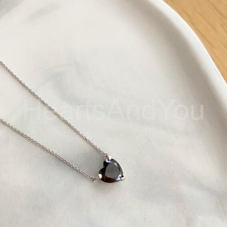 0.5ct Heart Simulated Black Diamond Solitaire Pendant Chain 14k WhiteGold Plated