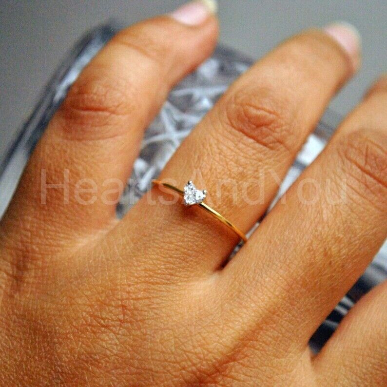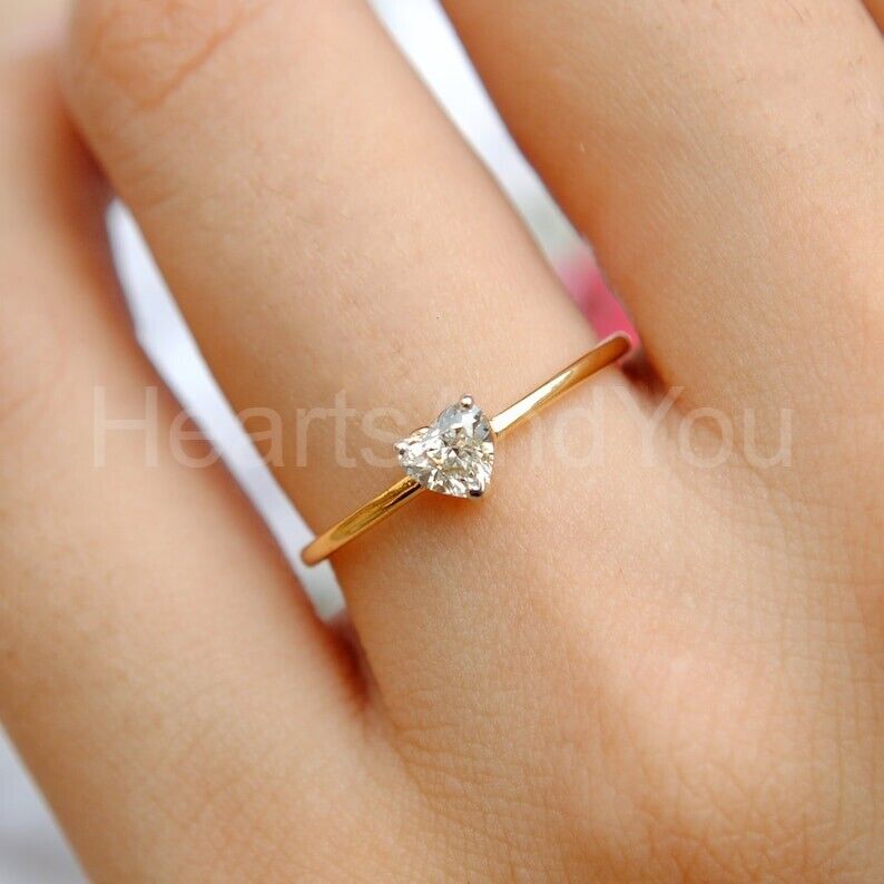 0.5ct Heart Cut Simulated Diamond Solitaire Engagement Ring 14K Yellow Gold Plated