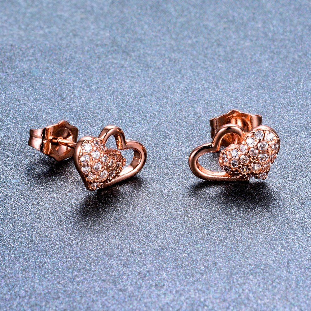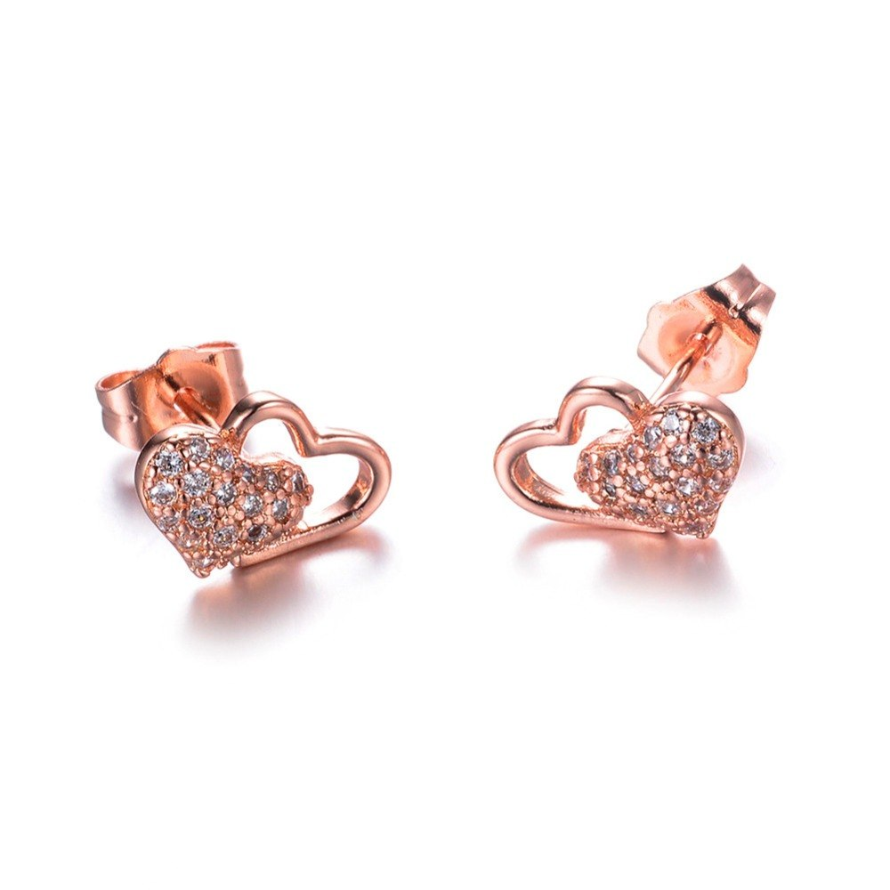 0.5ct Round Cut Diamond Heart Shape Love Design Stud Earrings 14k Rose Gold Over
