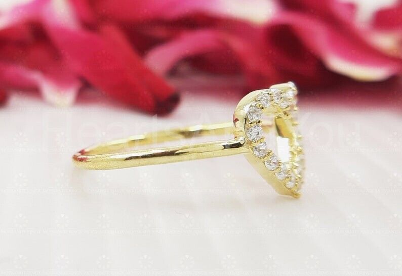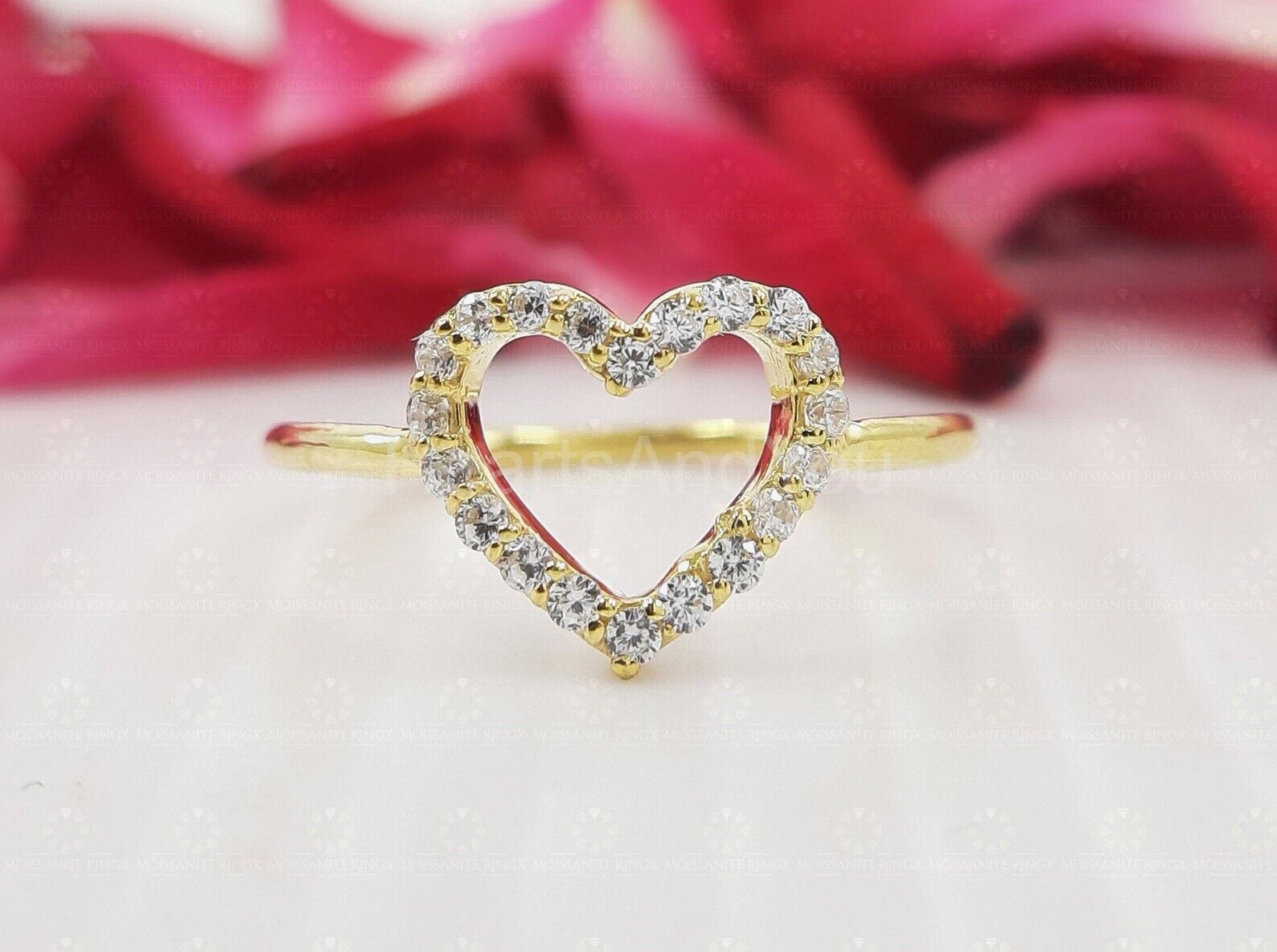 0.5ct Round Cut Moissanite Open Heart Love Engagement Ring 14k Yellow Gold Plated