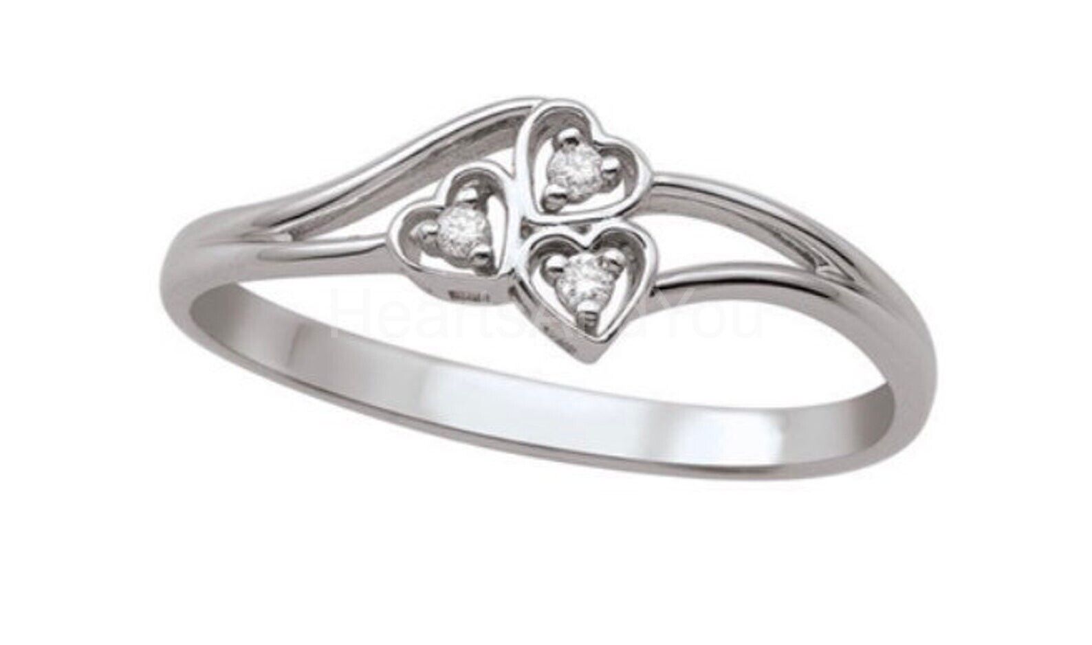 0.5ct Round Cut Moissanite Three Hearts Engagement Ring 14k White Gold Plated