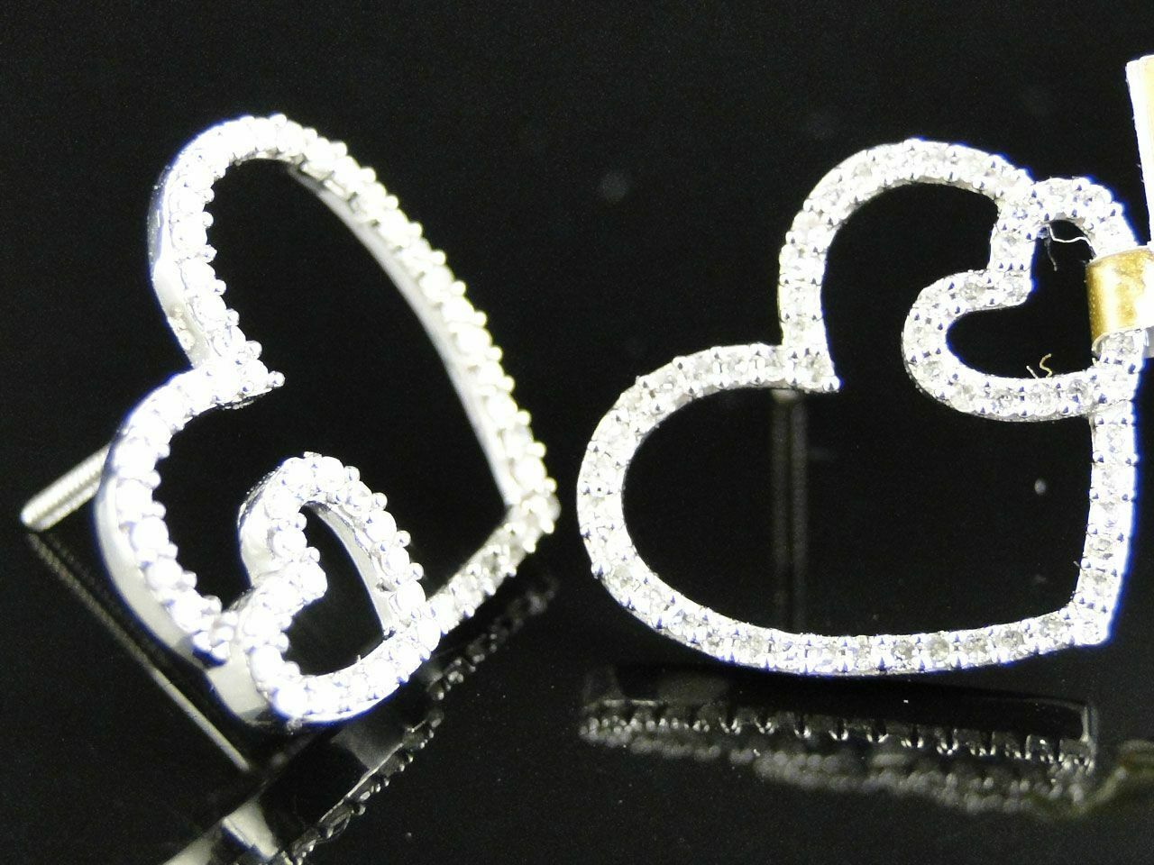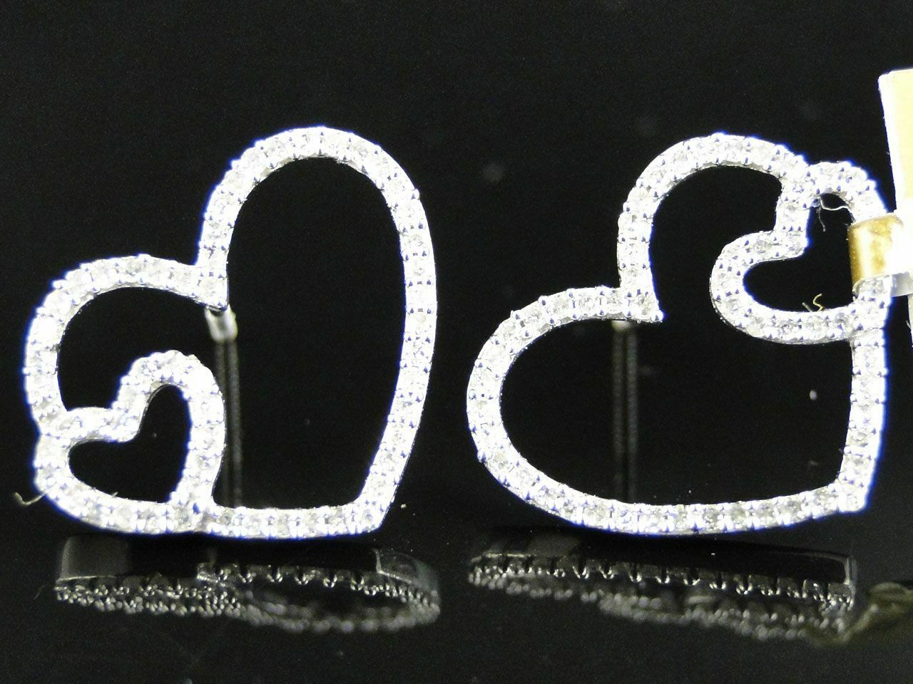 0.5ct Round Cut VVS1 Diamond Dual Open Heart Stud Earrings 14k White Gold Finish
