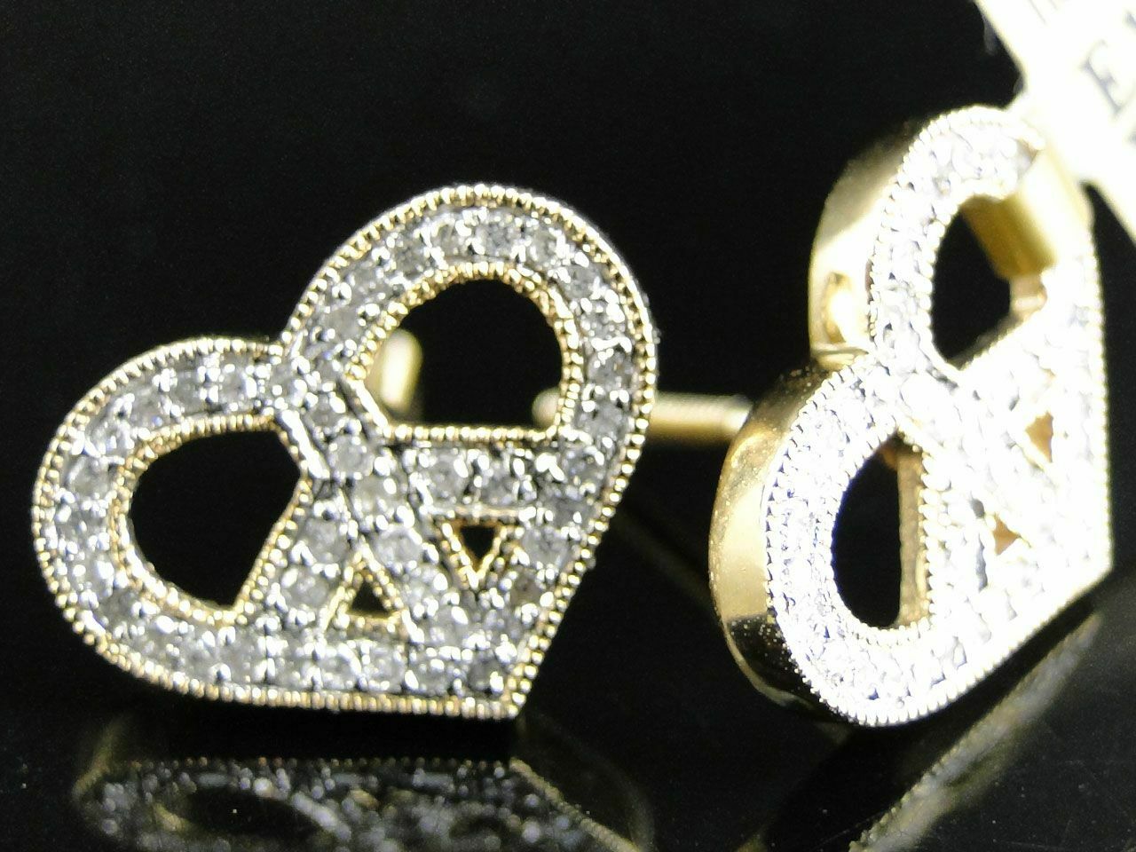 0.5ct Round Cut VVS1 Diamond Pretzel Heart Stud Earrings 14k Yellow Gold Finish