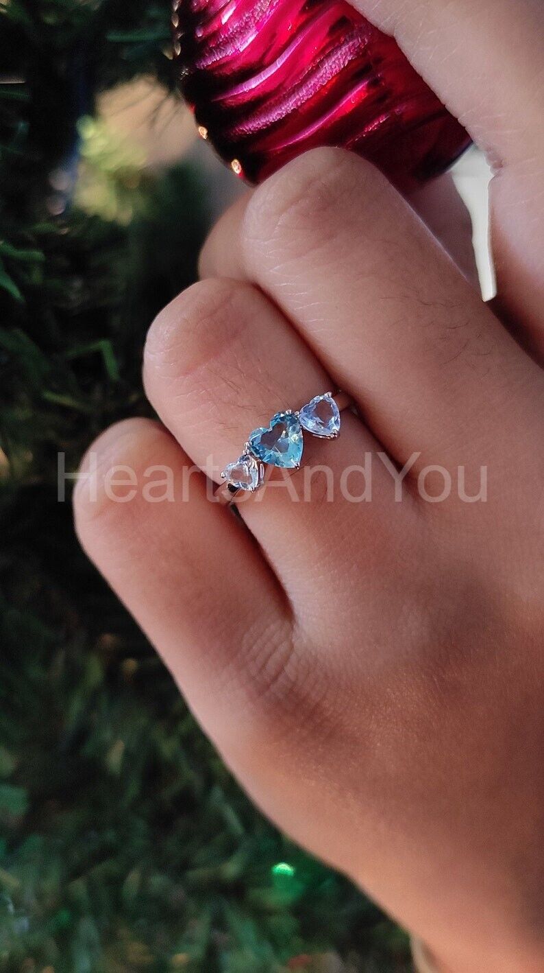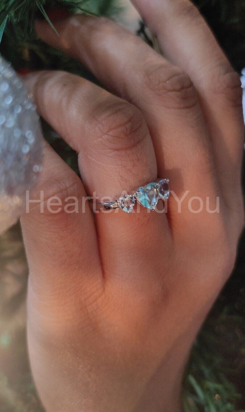 0.6ct Heart Cut Simulated Blue Aquamarine Three Stone Ring 14k White Gold Plated