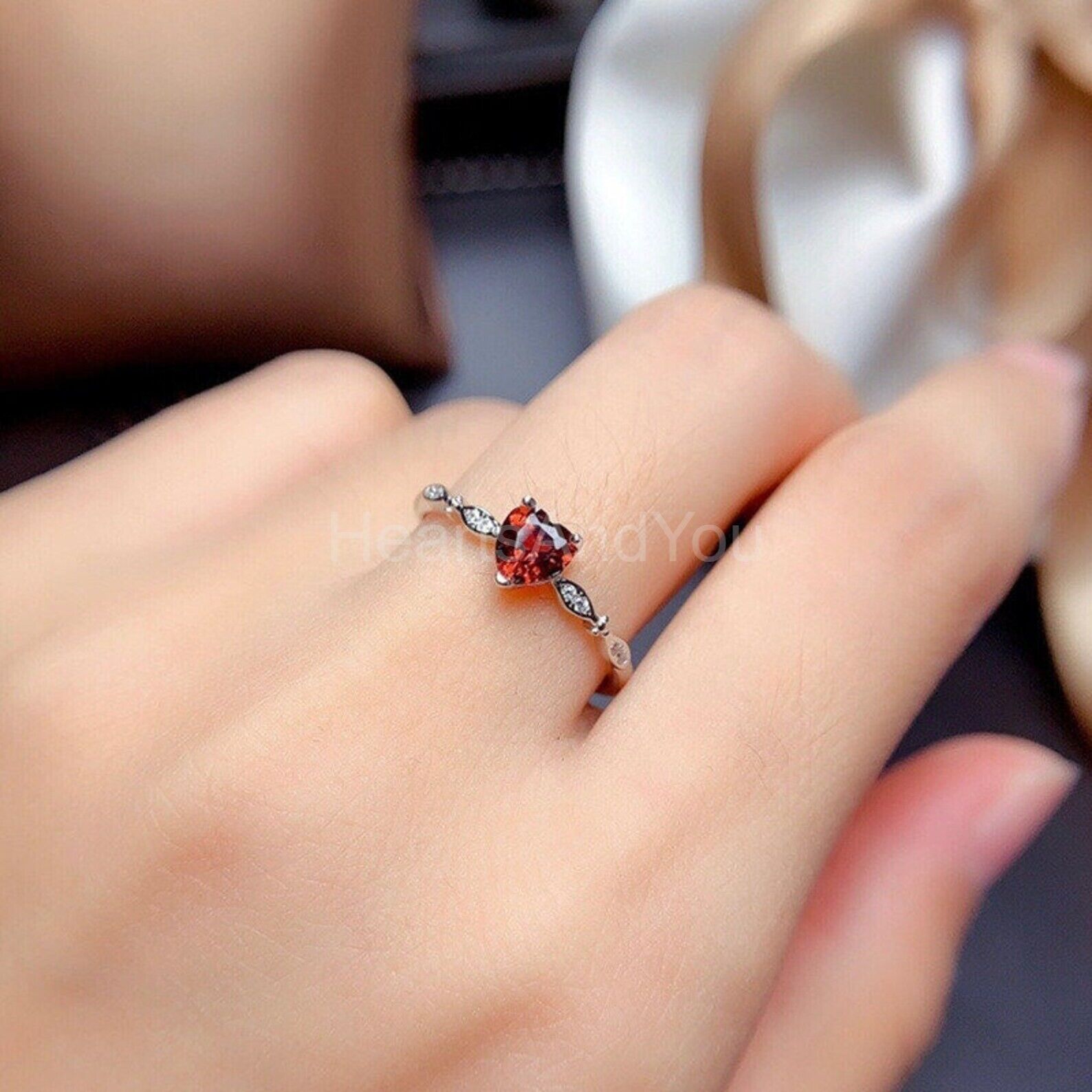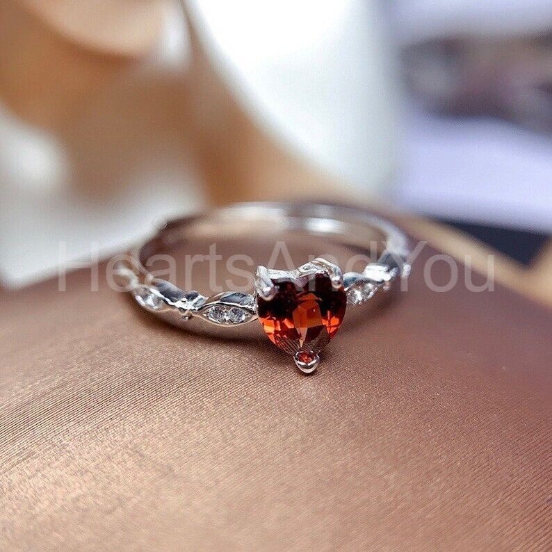 0.6ct Heart Cut Simulated Red Garnet Minimalist Ring 14k White Gold Plated