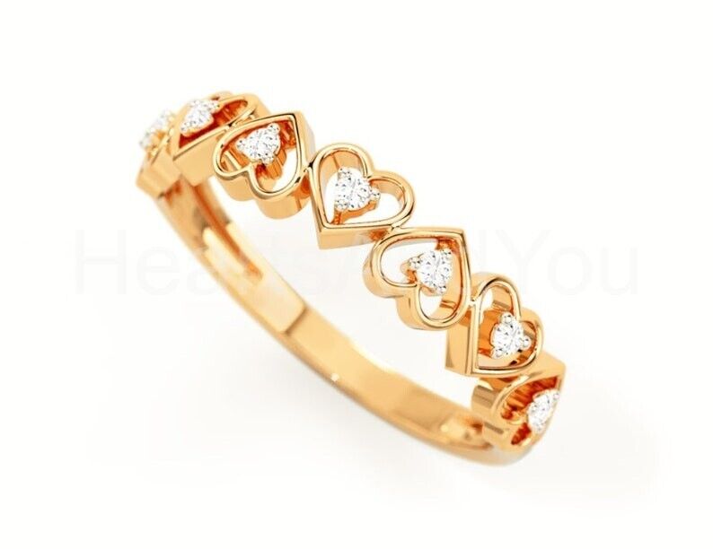 0.6ct Round Cut Moissanite Open Heart Women Wedding Band 14k Yellow Gold Plated