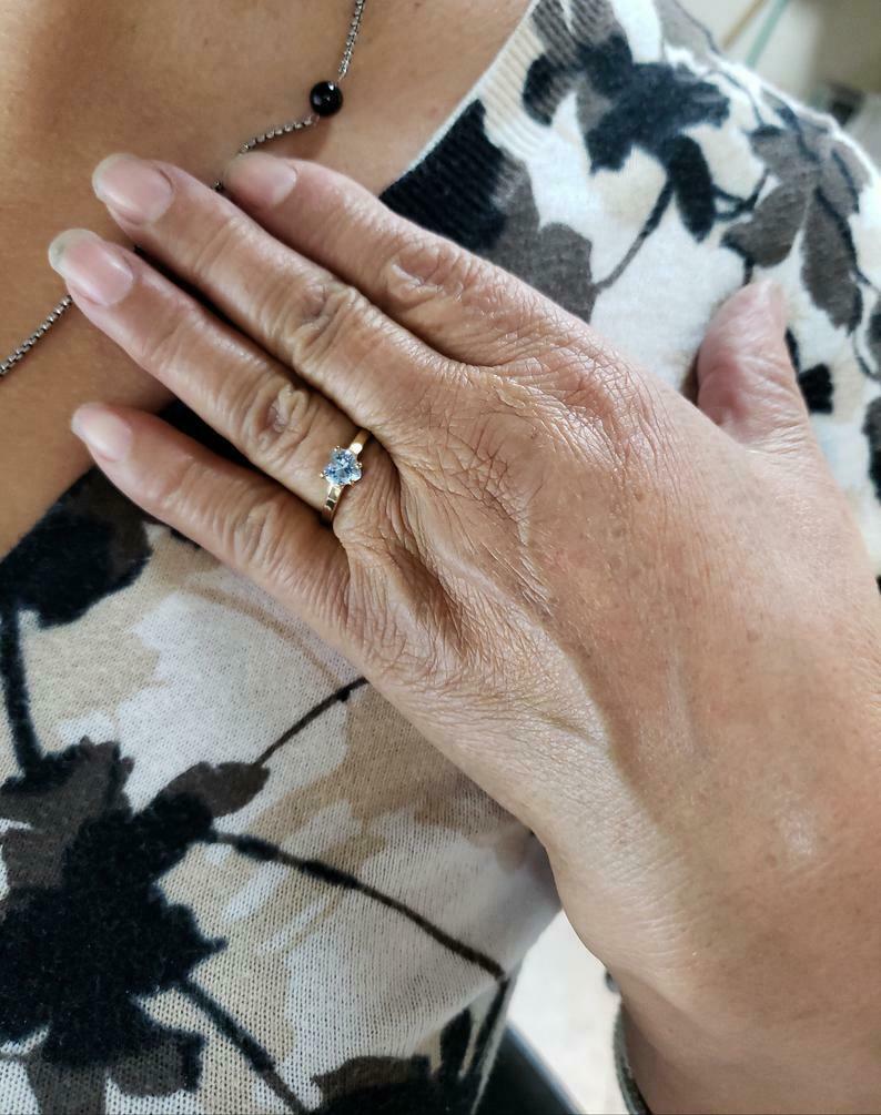 0.7ct Engagement Ring Heart Cut Blue Aquamarine Solitaire 14k Yellow Gold Finish