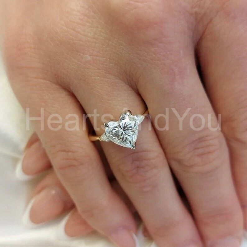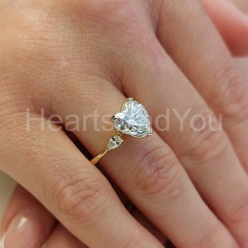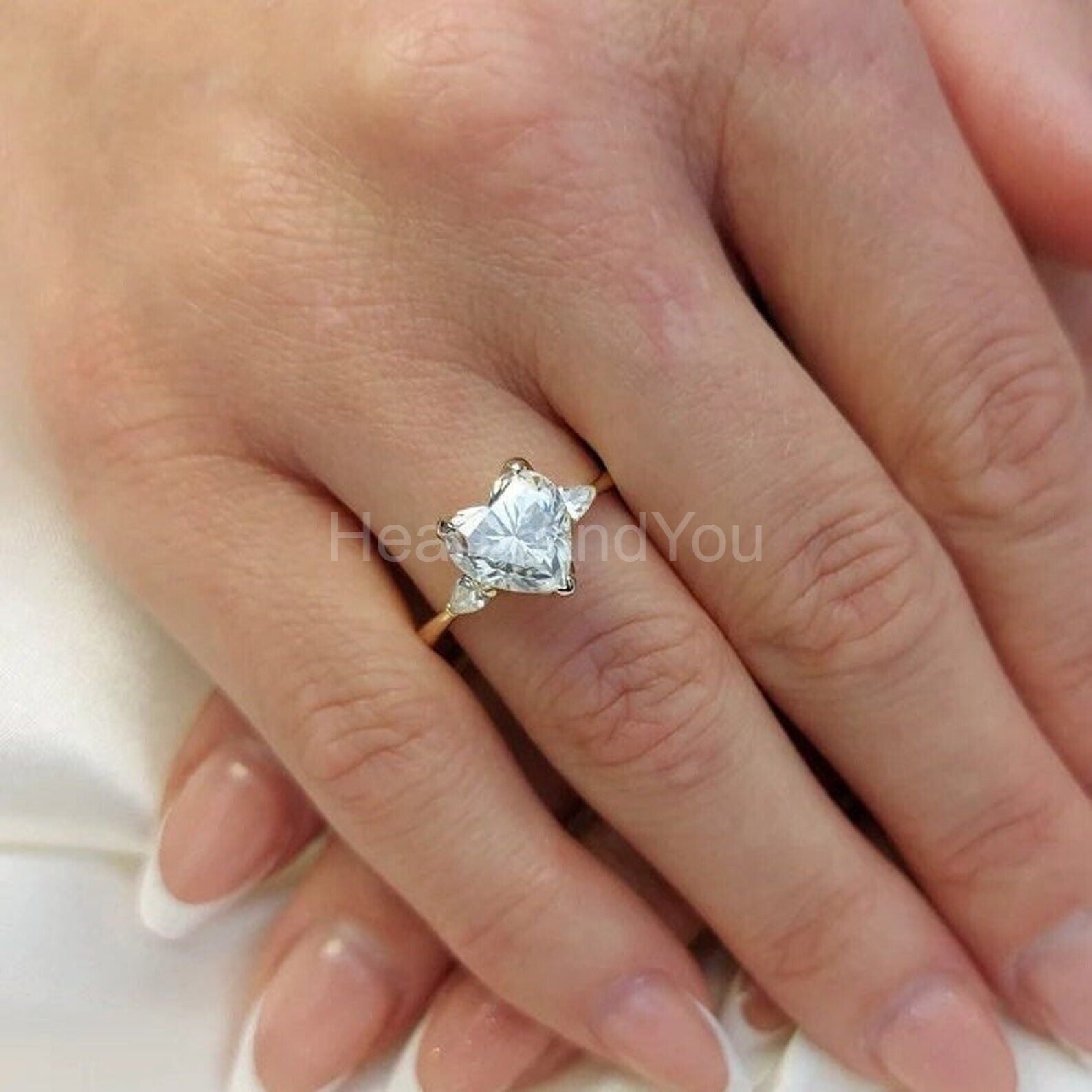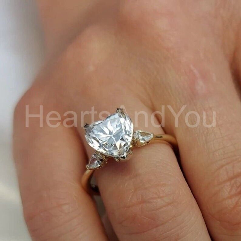 0.7ct Heart Simulated Diamond Three Stone Engagement Ring 14k Yellow Gold Plated