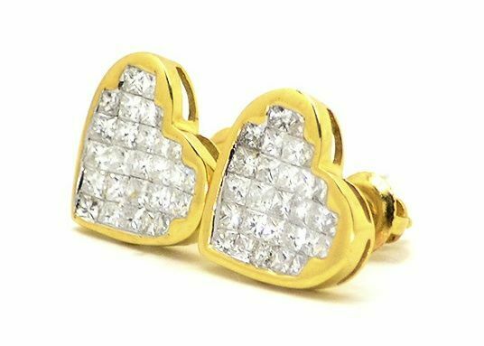 0.88ct Princess Cut Diamond Heart Cluster Stud Earrings 14k Yellow Gold Finish