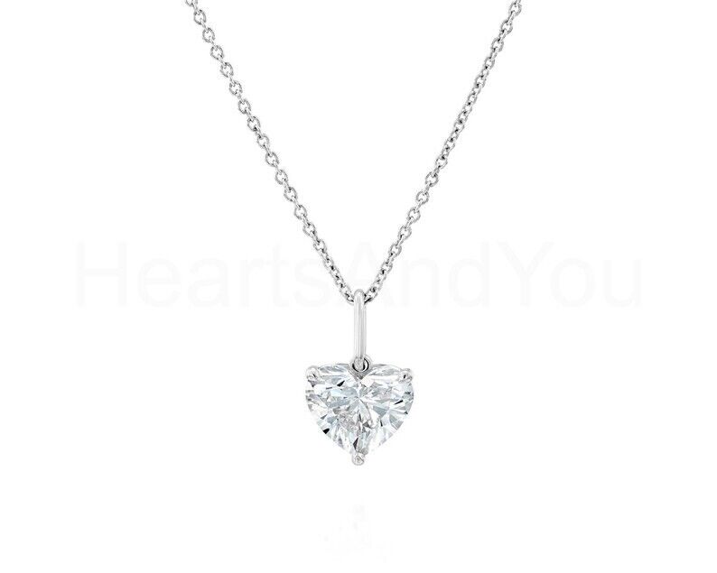 0.8ct Heart Cut Simulated Diamond Solitaire Pendant Chain 14k White Gold Plated
