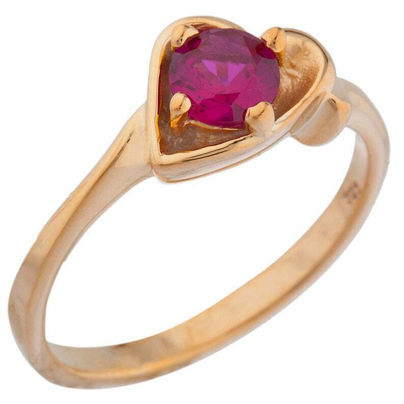 0.9ct Engagement Ring Round Cut Pink Ruby Bypass Heart 14k Rose Gold Finish